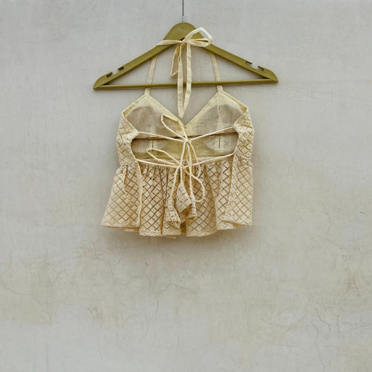 White Chikan Straight Triangle Top - KJ10084