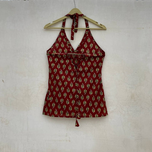Maroon Leaf Halter Neck Criss Cross Kurti Top - KJ10088