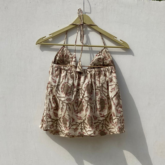 Beige Brown Paisley Handblock Tree Removable Pads Top - KJ10025