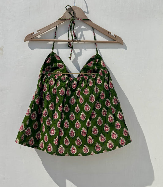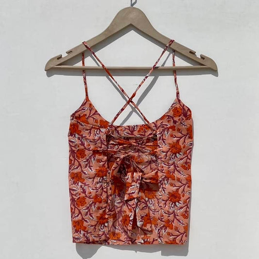 Peach Jaal Criss Cross Back Knot Cotton Top- KJ0798