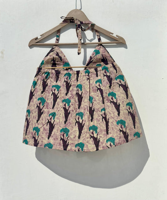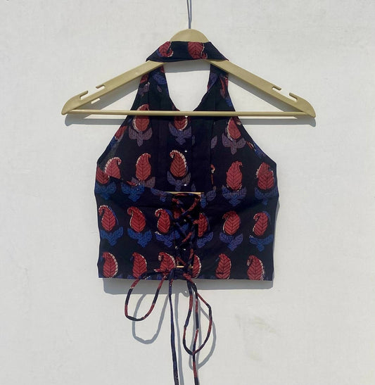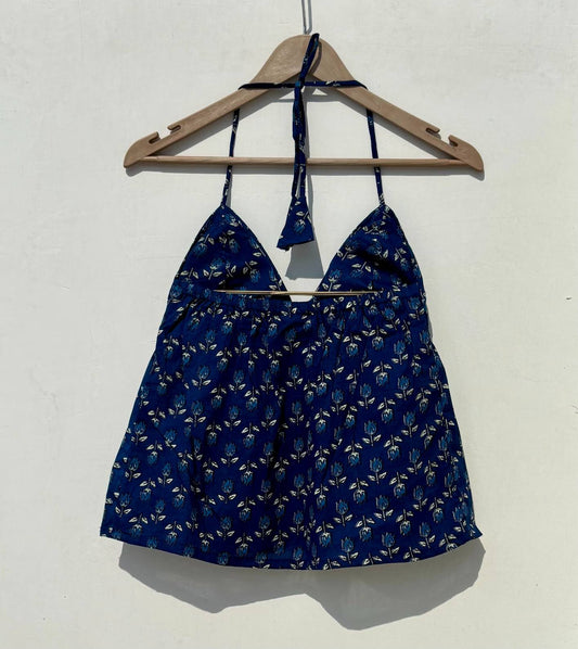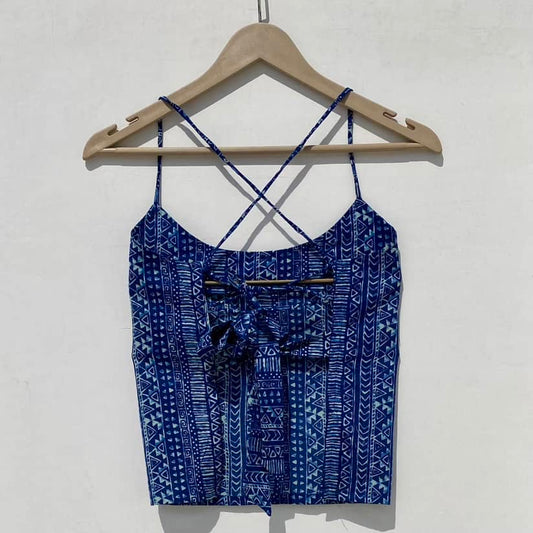 Blue Geometry Criss Cross Back Knot Cotton Top- KJ0798