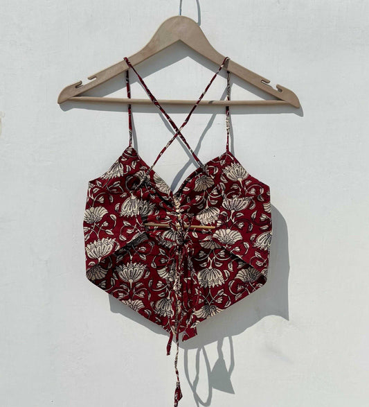 Maroon Floral Criss Cross Cotton Top - KJ0881