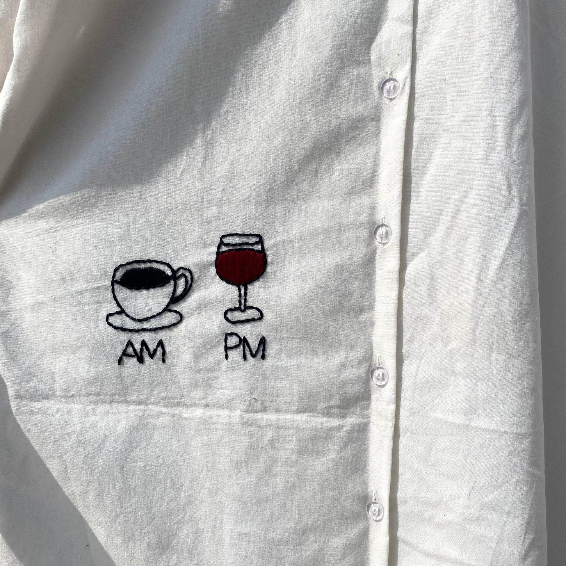 AM PM Hand Embroidery Cotton Women Shirt - KJ10112