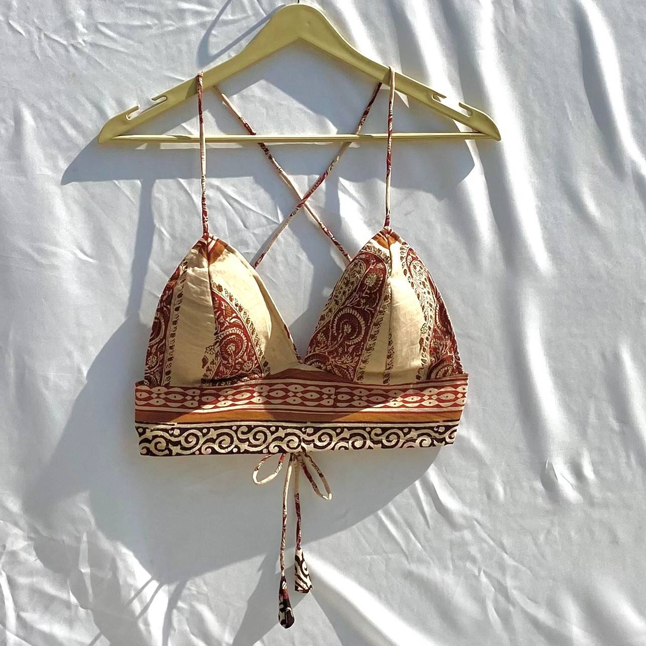 Beige Red Handblock Removable Pads Bra - Kj10342
