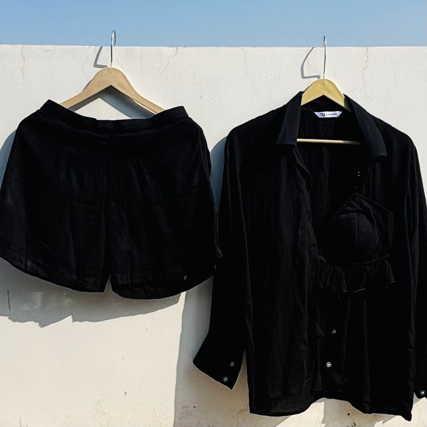 Black Crush Cotton Coord Set Removable Pads - KJ0840