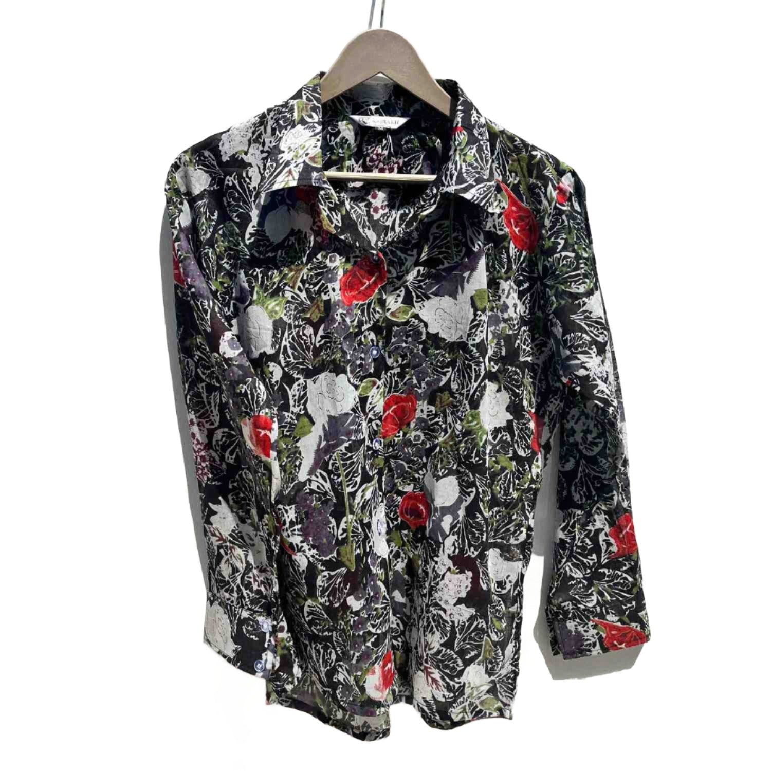 Black Floral Overall Mul Women Shirt - KJ0555