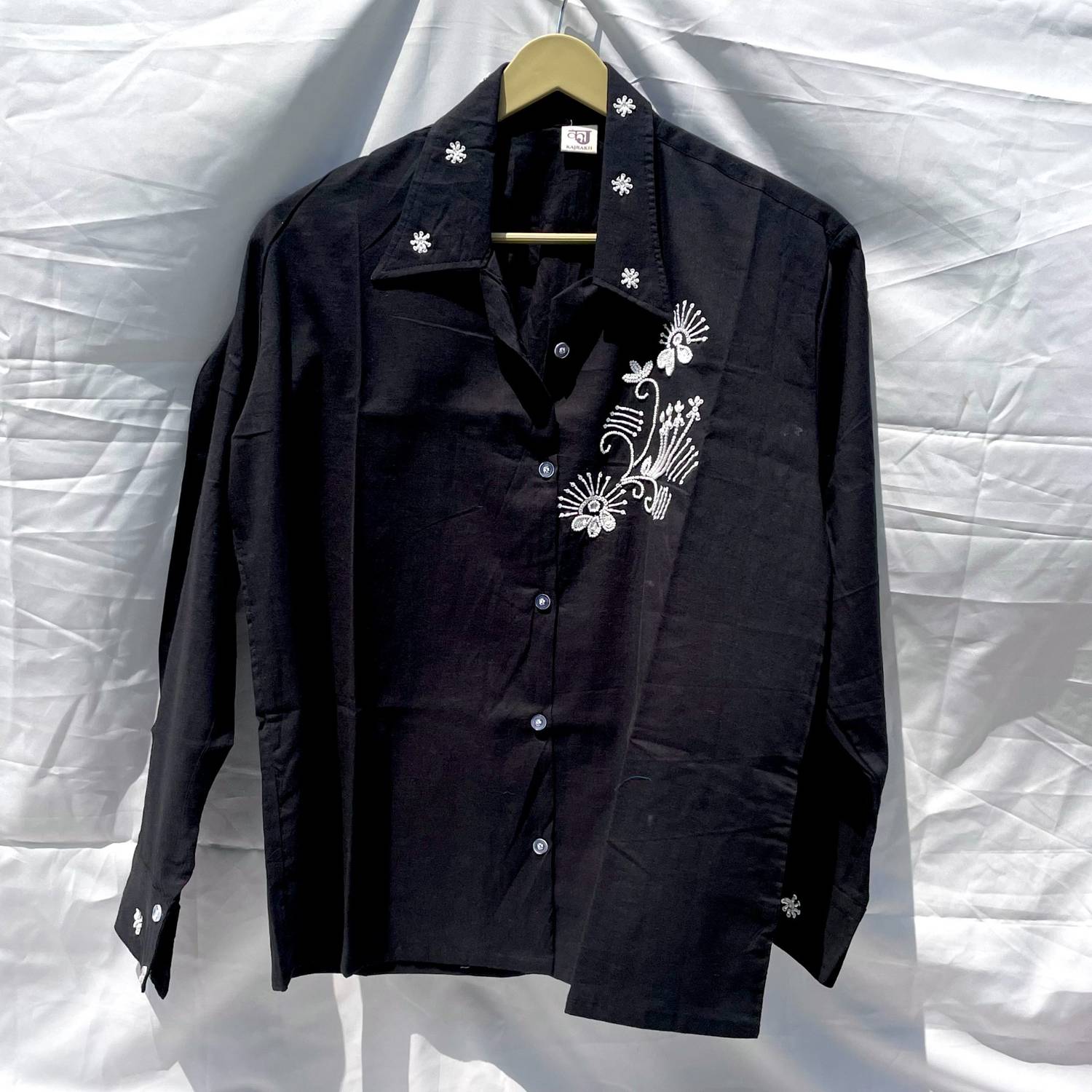 Black Hand Embroidery Cotton Shirt - KJ0408