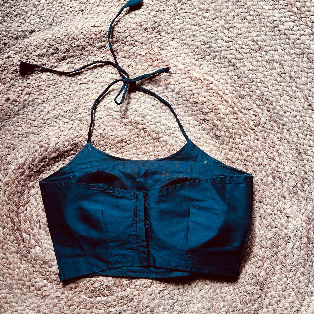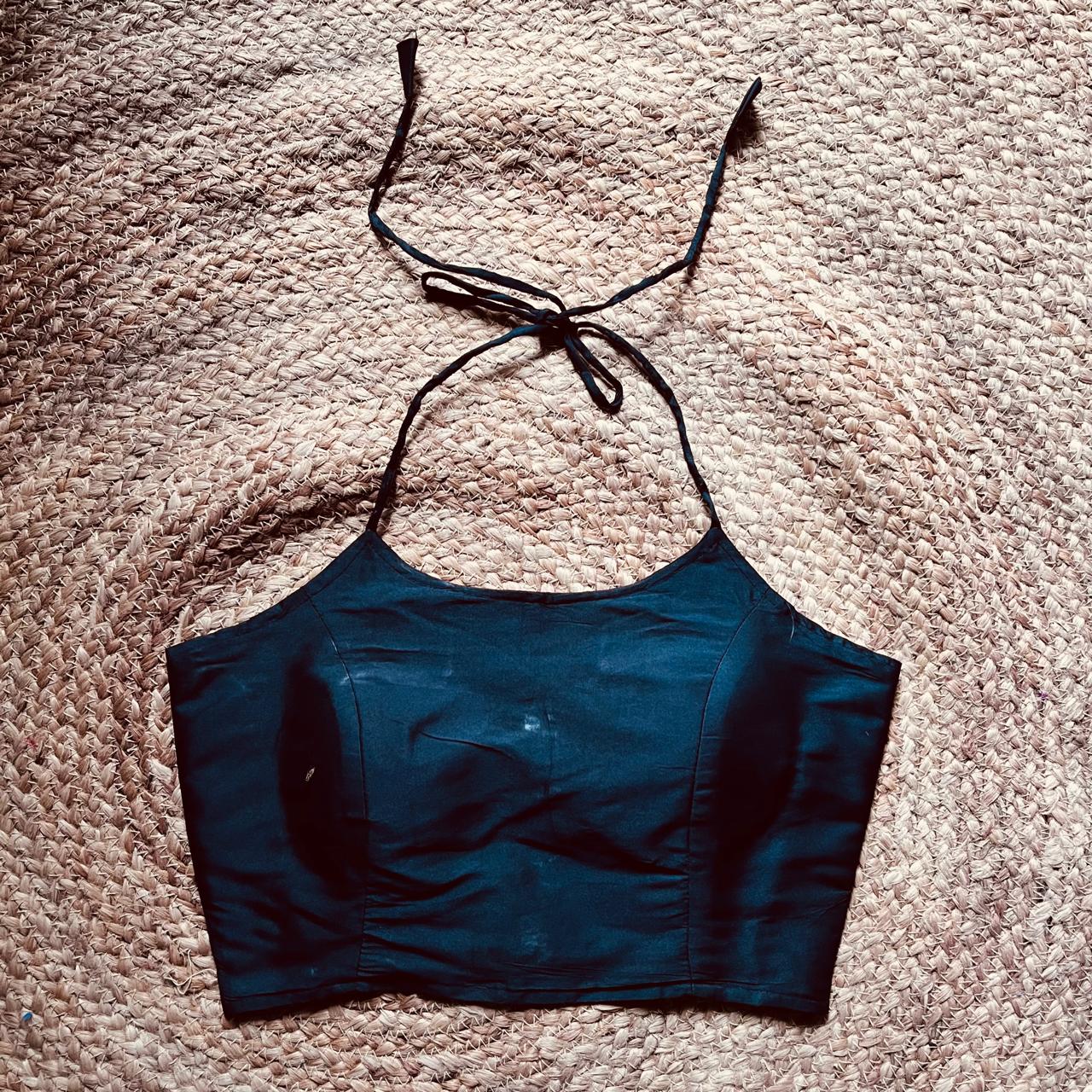 Black Plain Halter Neck Taffeta Removable Pad Blouse - 700 - FAL10123