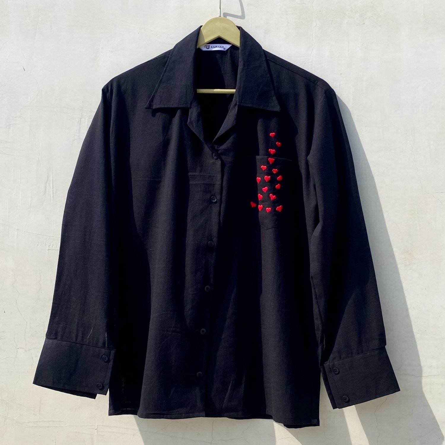 Black Red Heart Hand Embroidery Cotton Women Shirt - KJ10114 (Copy)5