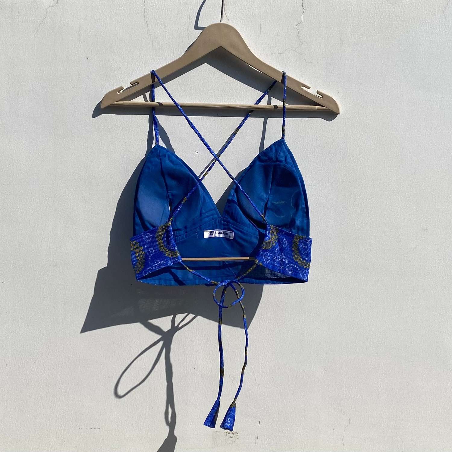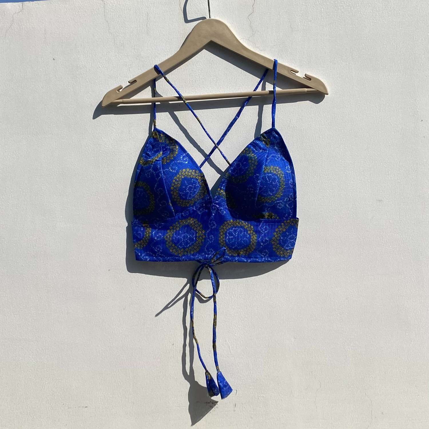 Blue Bandhej Kota Doria Removable Pad Bra - KJ0827