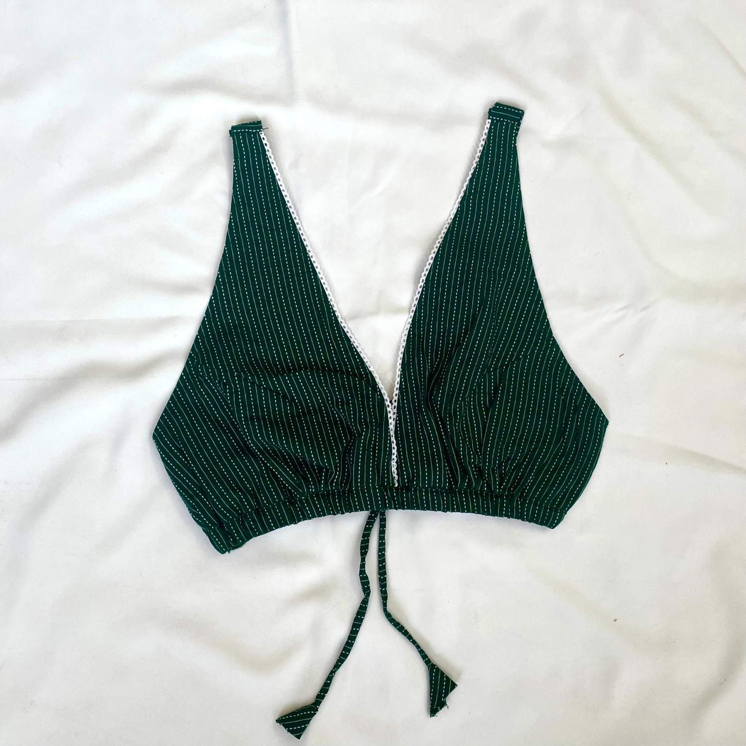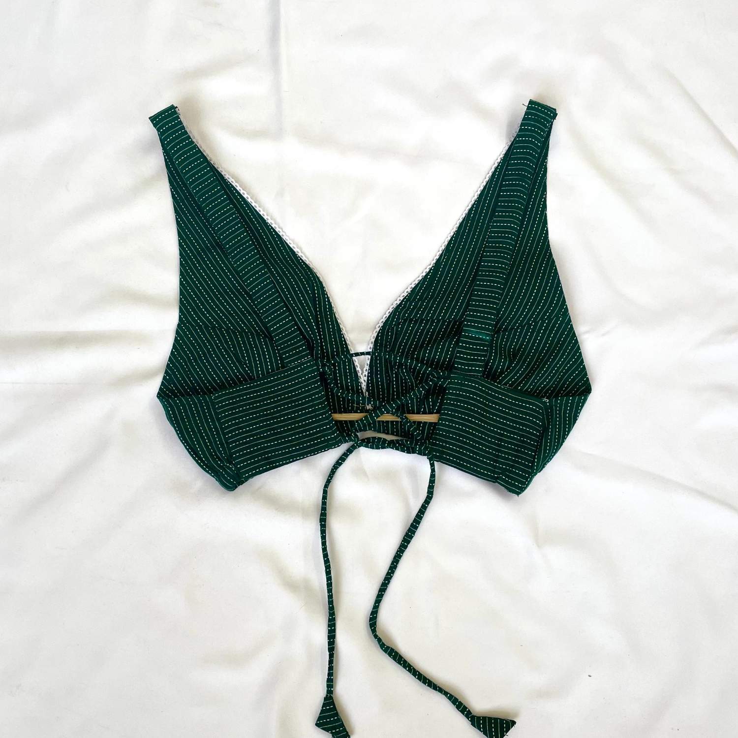 Bottle Green Deep V Neck Cotton Kantha Bra- KJ0099
