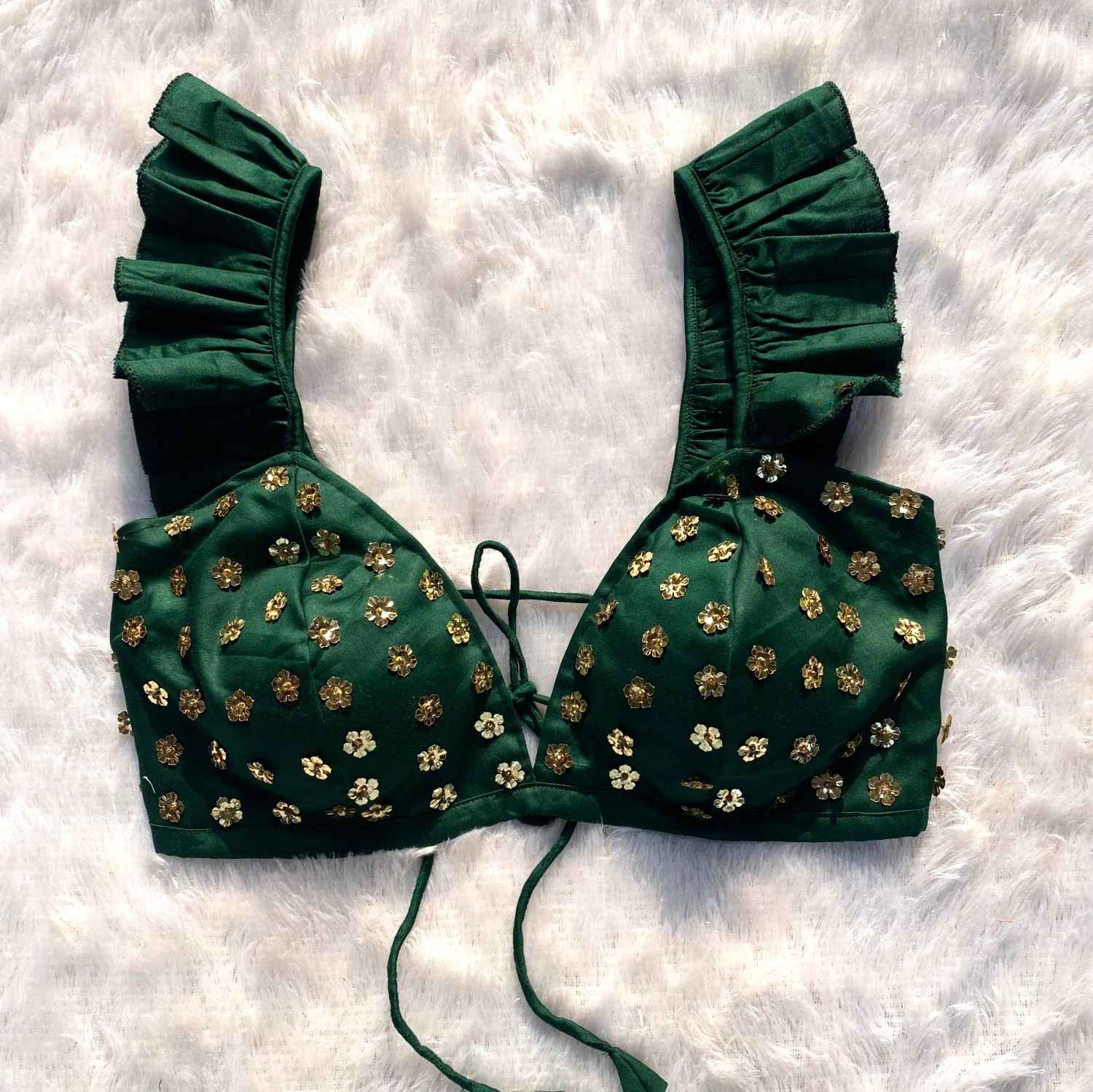 Bottle Green Floral Sequin HandWork Bra - KJ0205