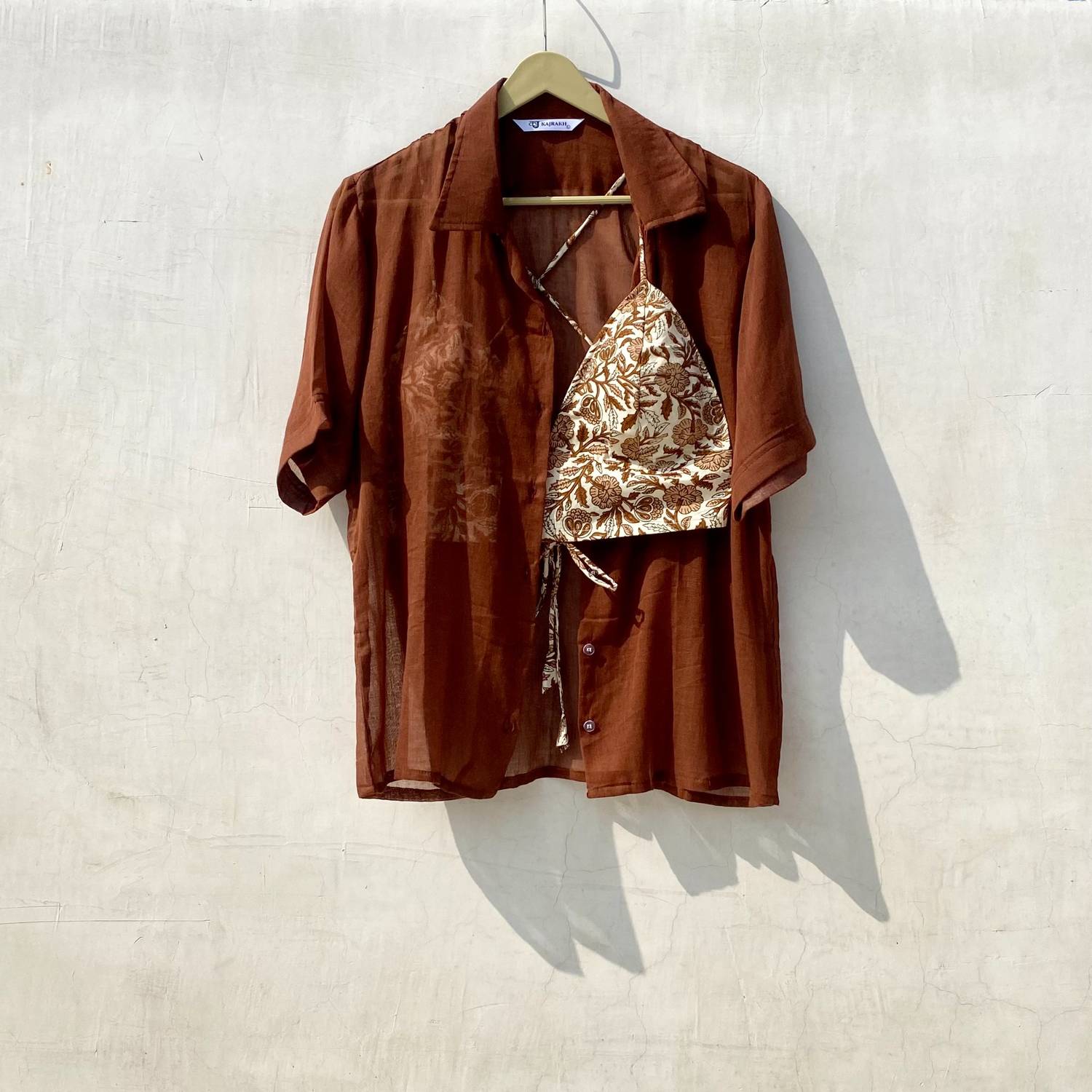 Brown Mul Shirt and Cream Floral Bra Combo - KJ10115