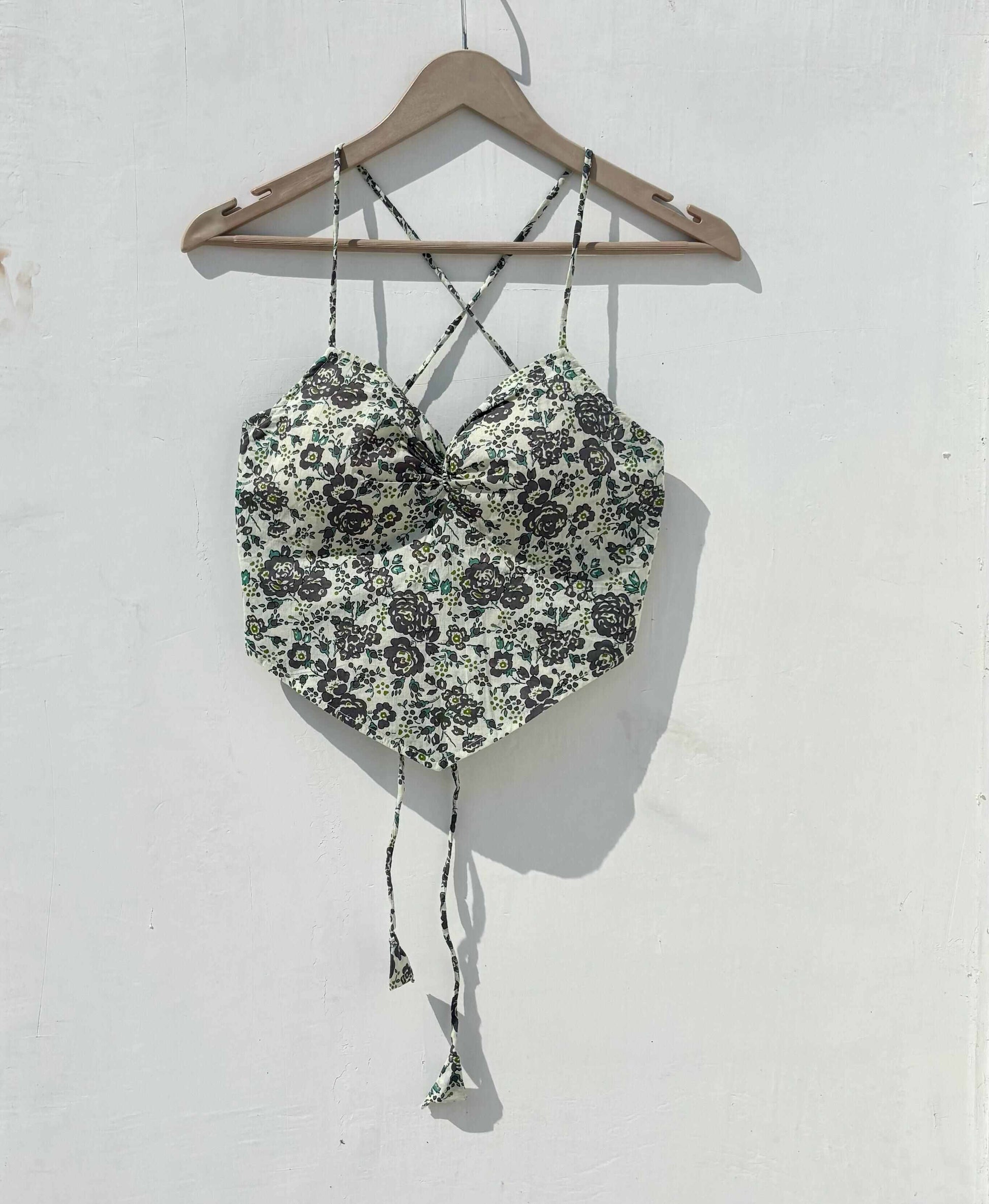 Cream Floral Criss Cross Cotton Top - KJ0877