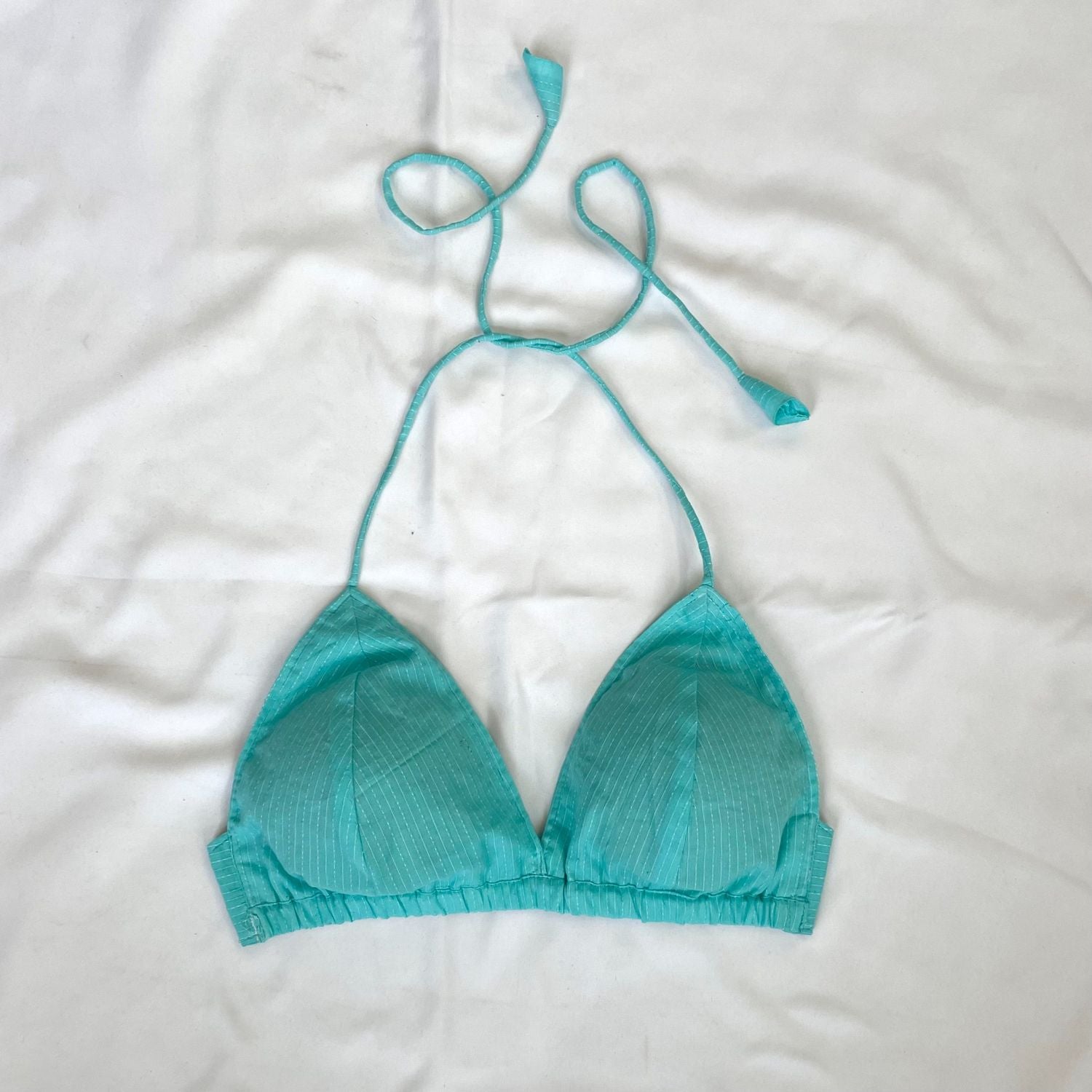Cyan Blue Deep V Neck Cotton Kantha Bra - KJ0094
