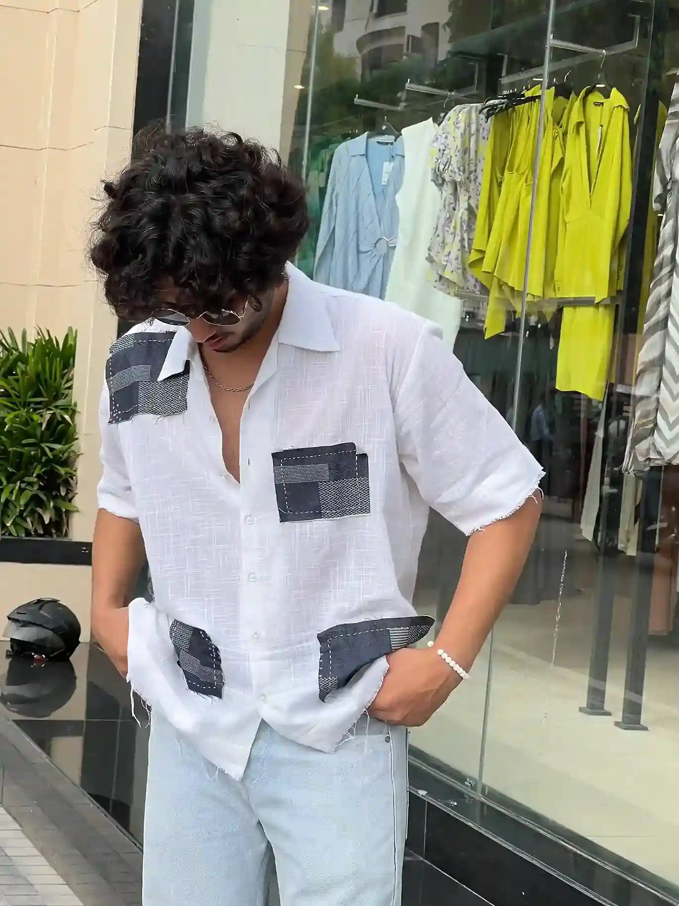 Denim Patched Classic White Shirt - AA10136