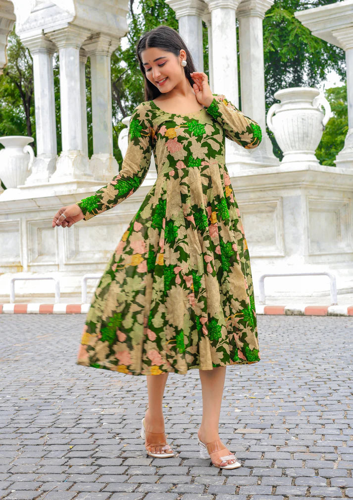 Evergreen Elegance Modal Silk Dress - 1700- Gheraa10206