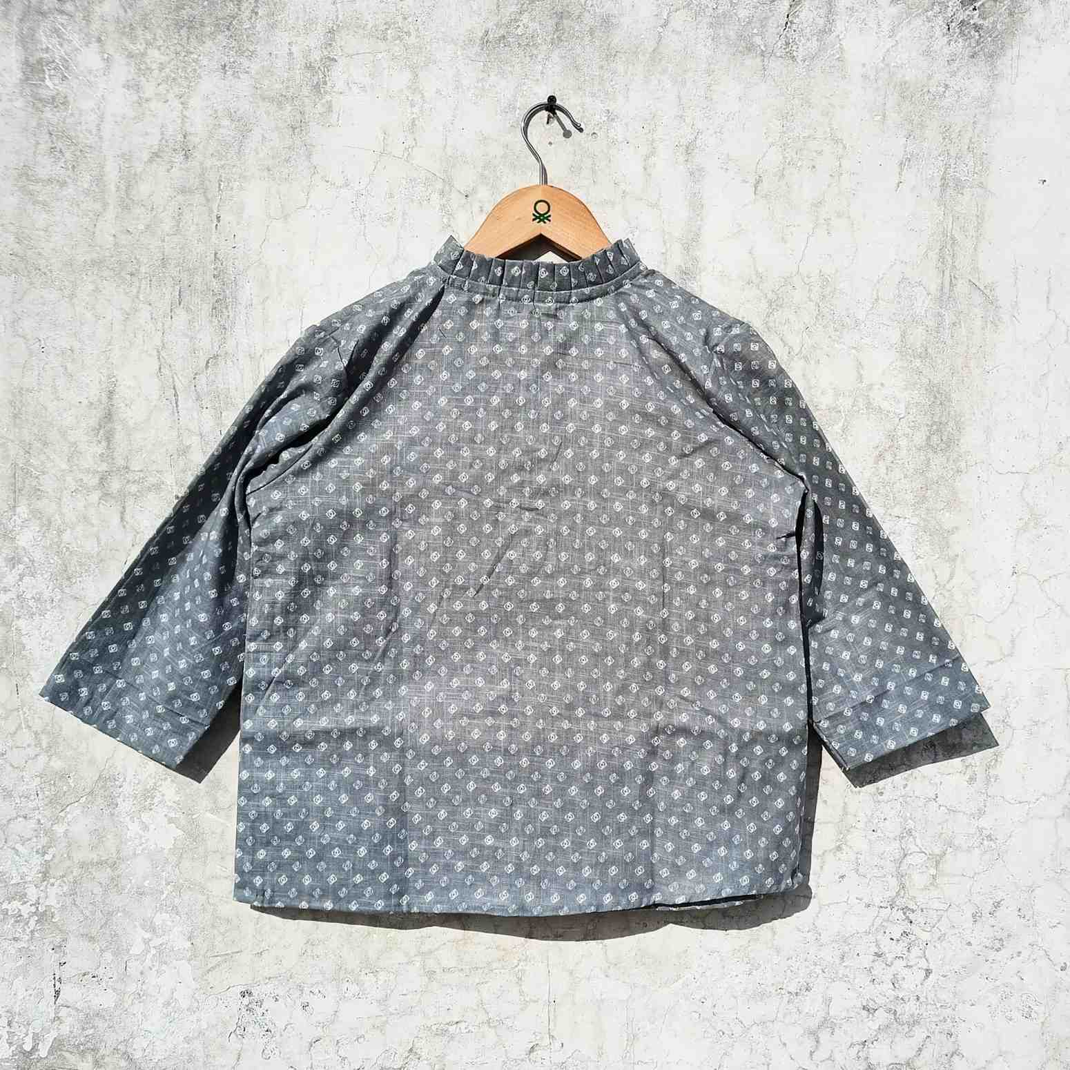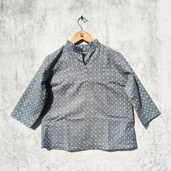 Frill Neck Grey Polka Women Shirt - KJ0012