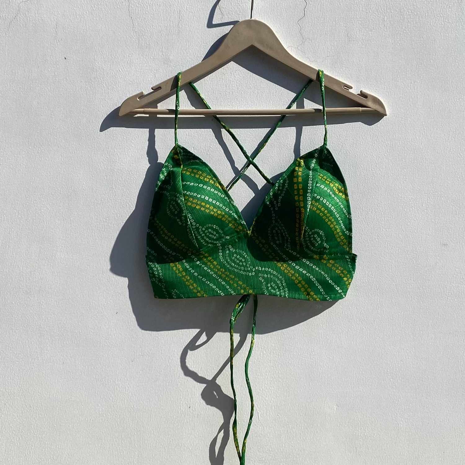 Green Bandhej Kota Doria Removable Pad Bra - KJ0829