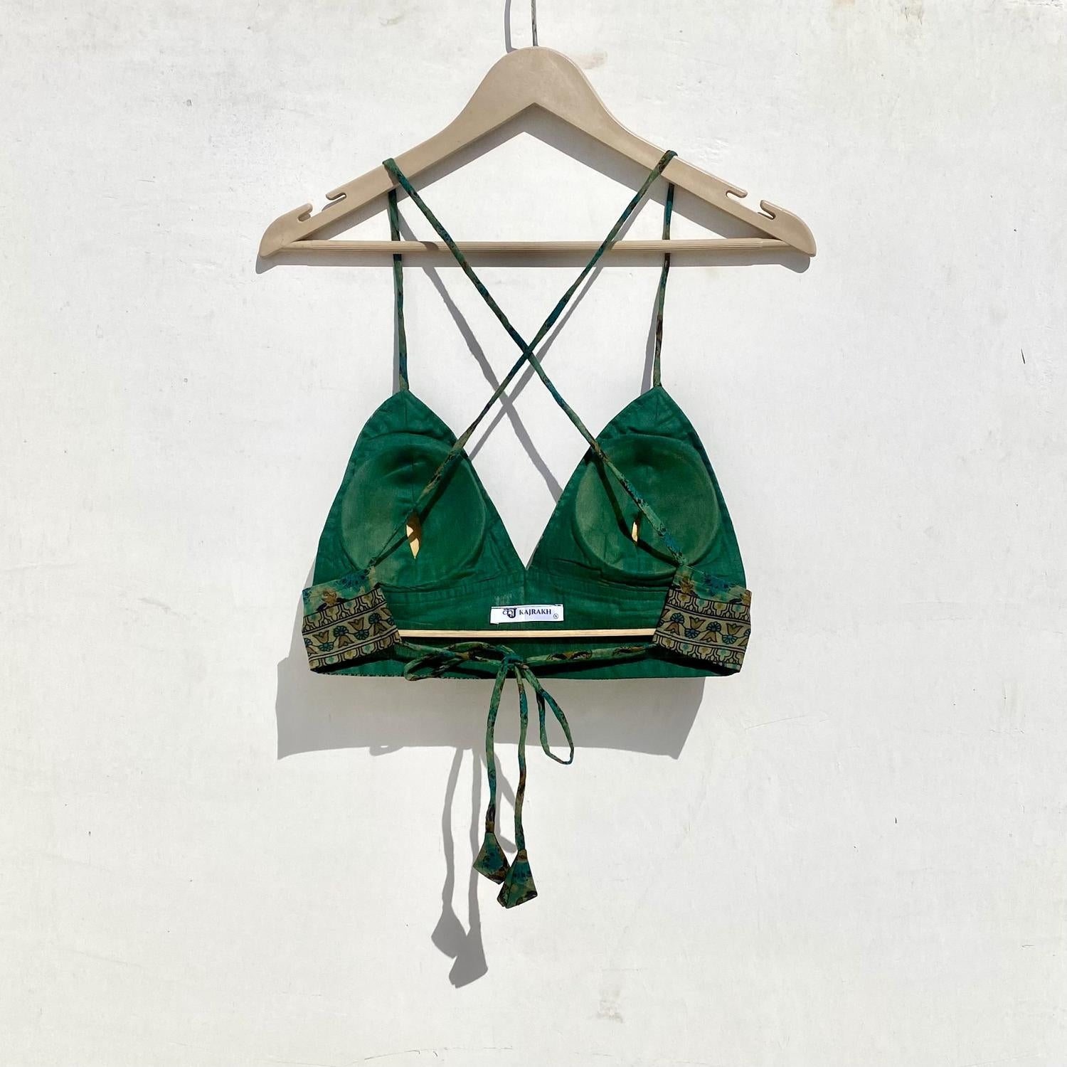 Green Beige Floral Removable Pads Bra - KJ10006