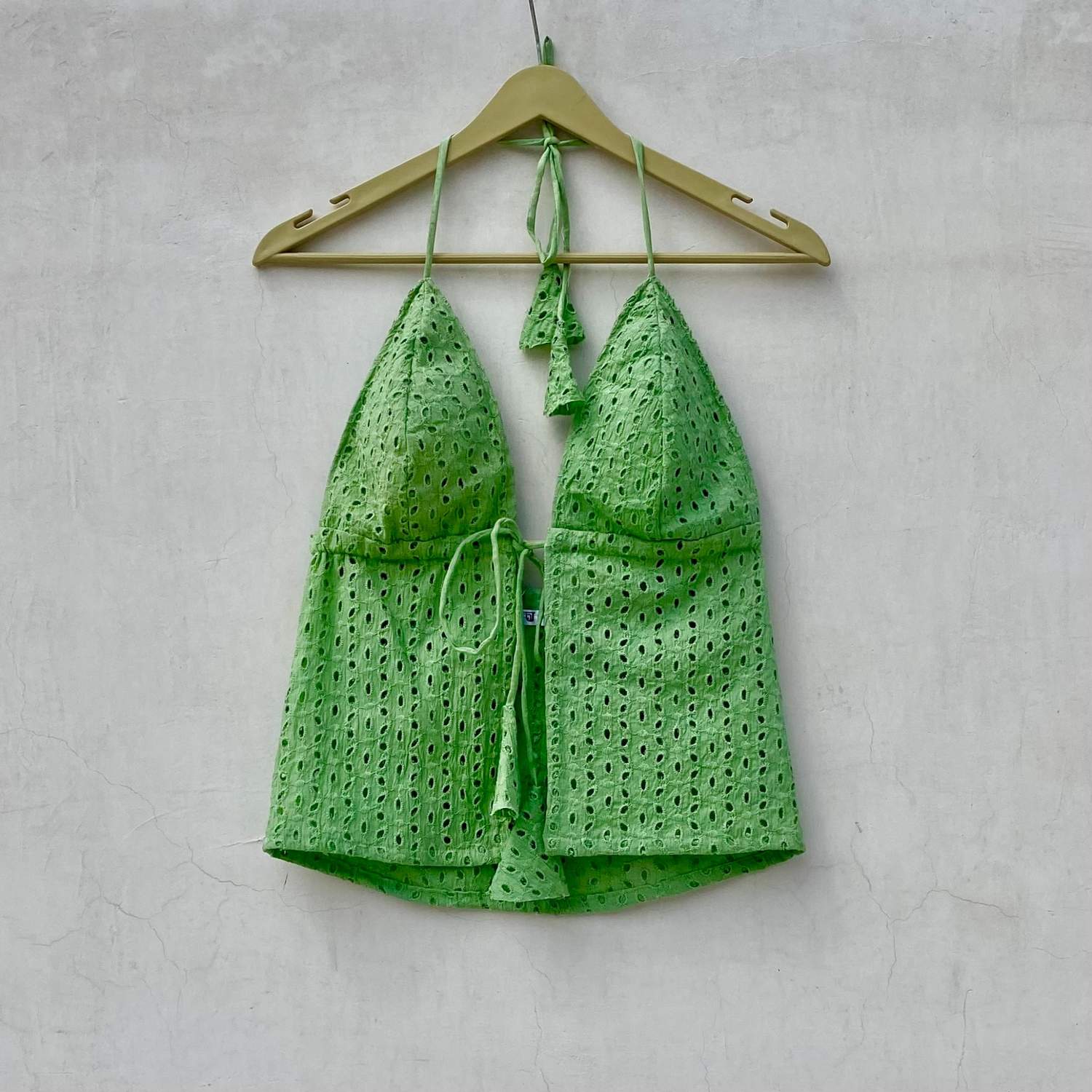 Green Chikan Front Knot & Open Tree Removable Pads Top - KJ10077