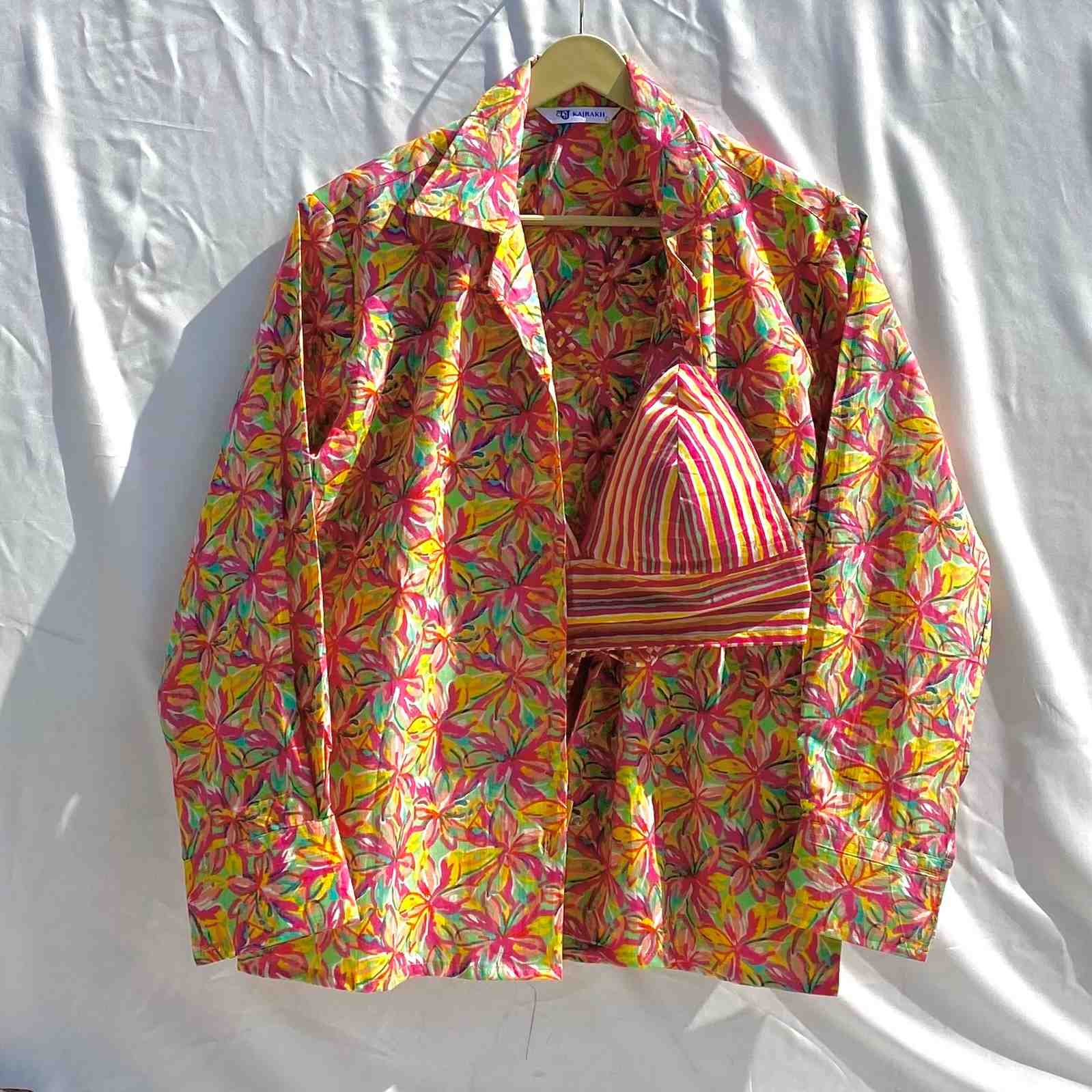 Holi Floral Jaal Shirt and Stripe Bra Combo - KJ10346