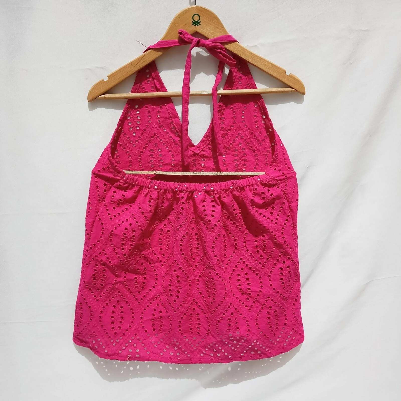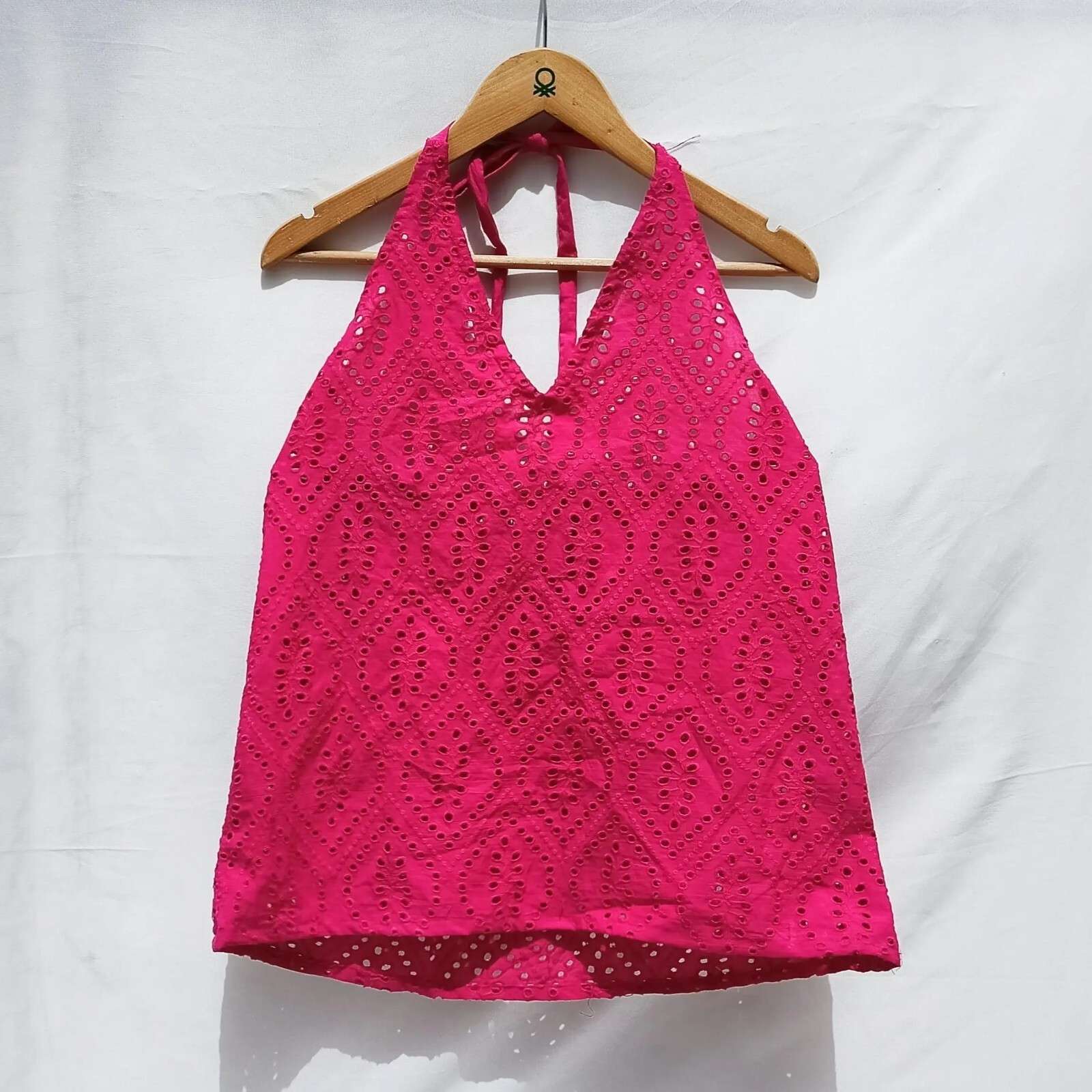 Magenta Chikan Halter Neck Cotton Top - KJ0022