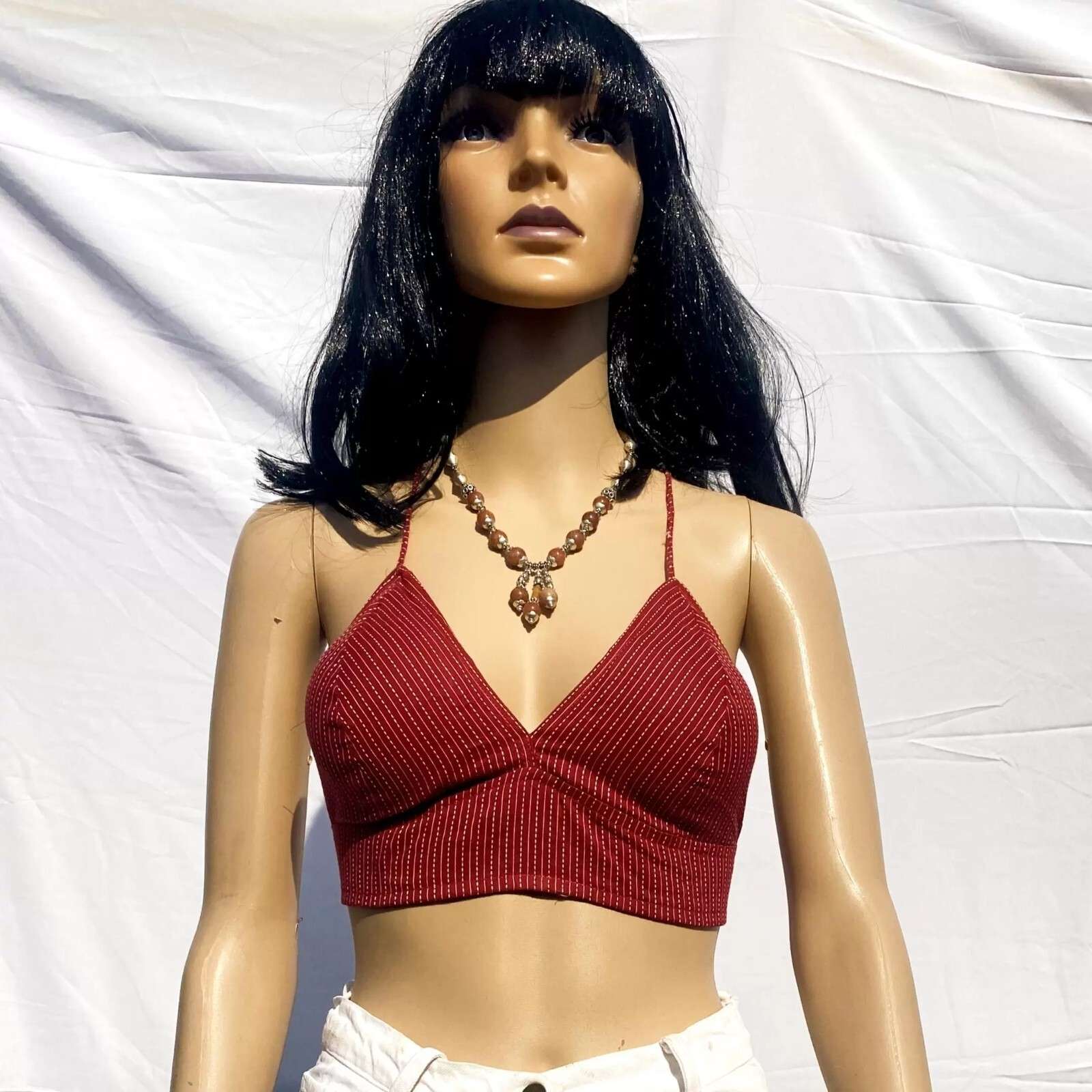 Maroon Kantha Cotton Padded Bra - KJ0049