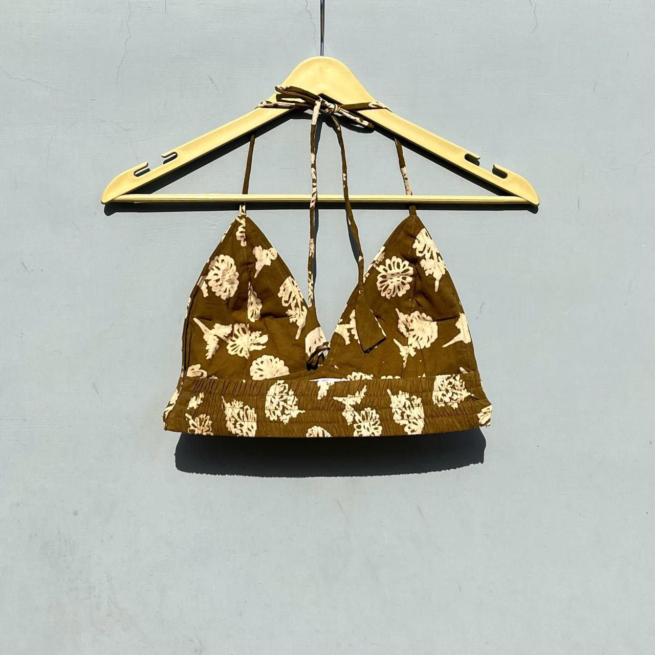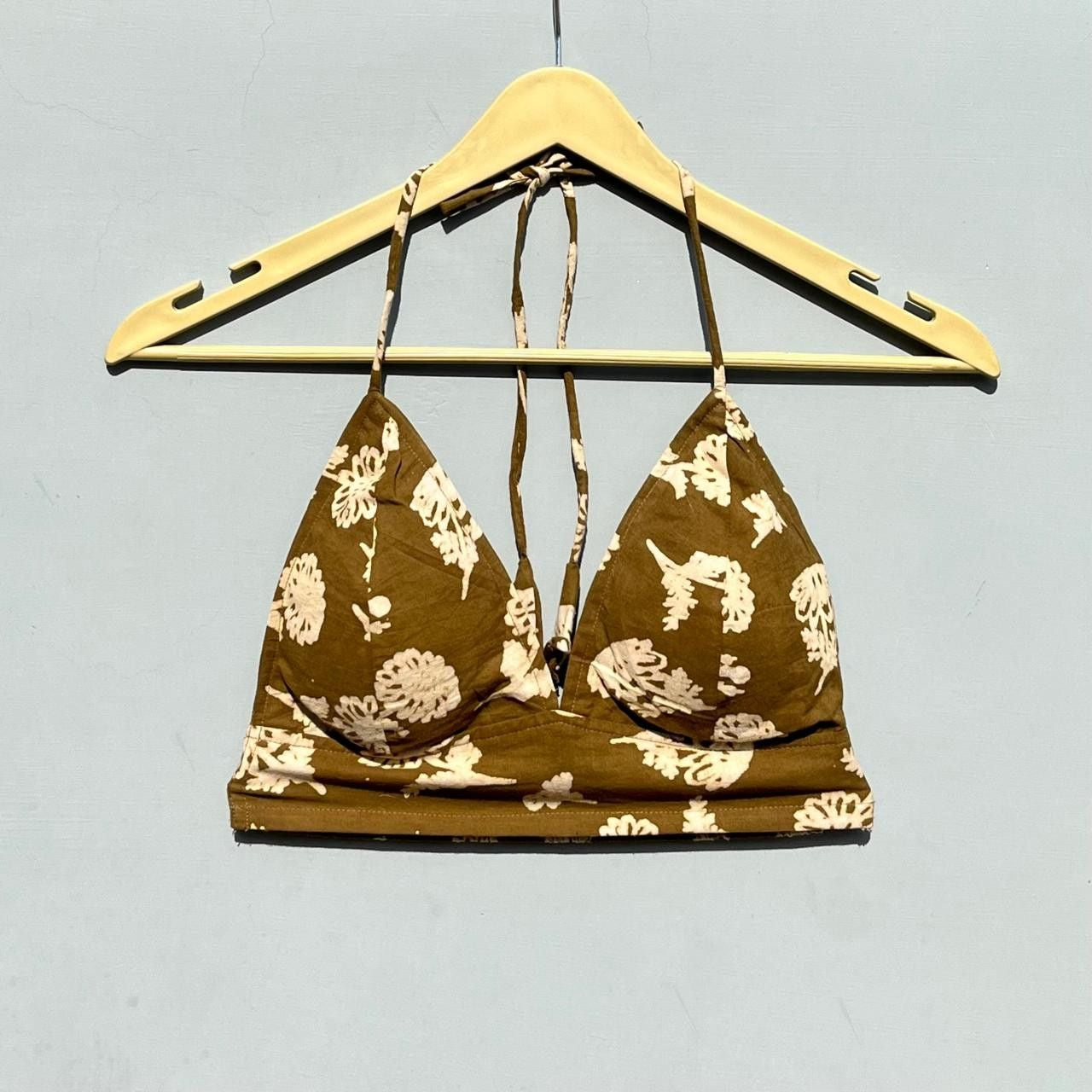 Olive Green Handblock Halter Neck Cotton Bra - KJ0587
