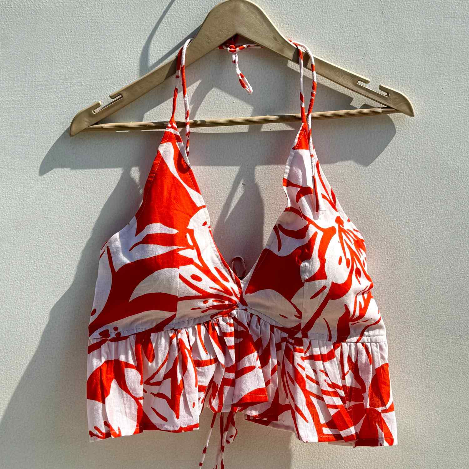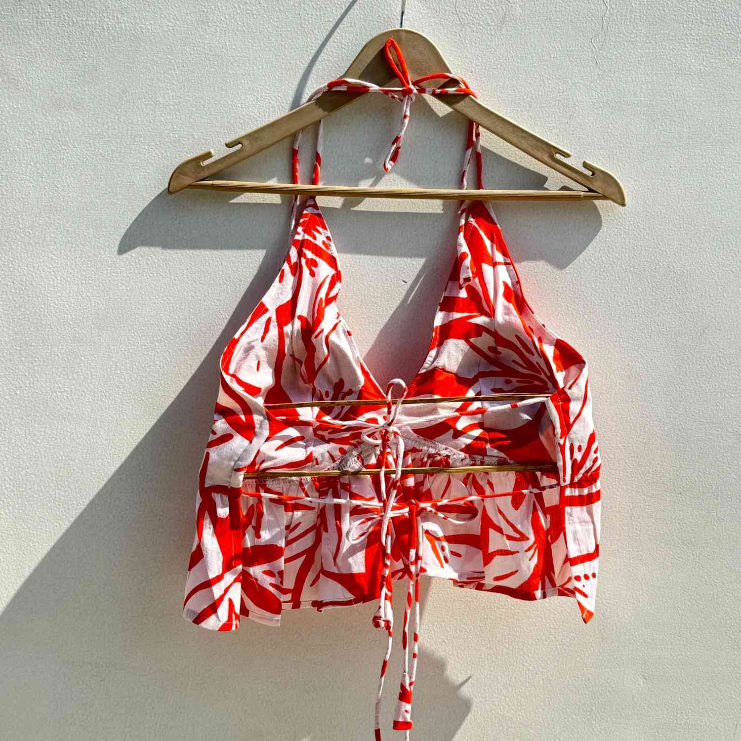 Orange Abstract Floral Frill Cotton Bra - KJ0522