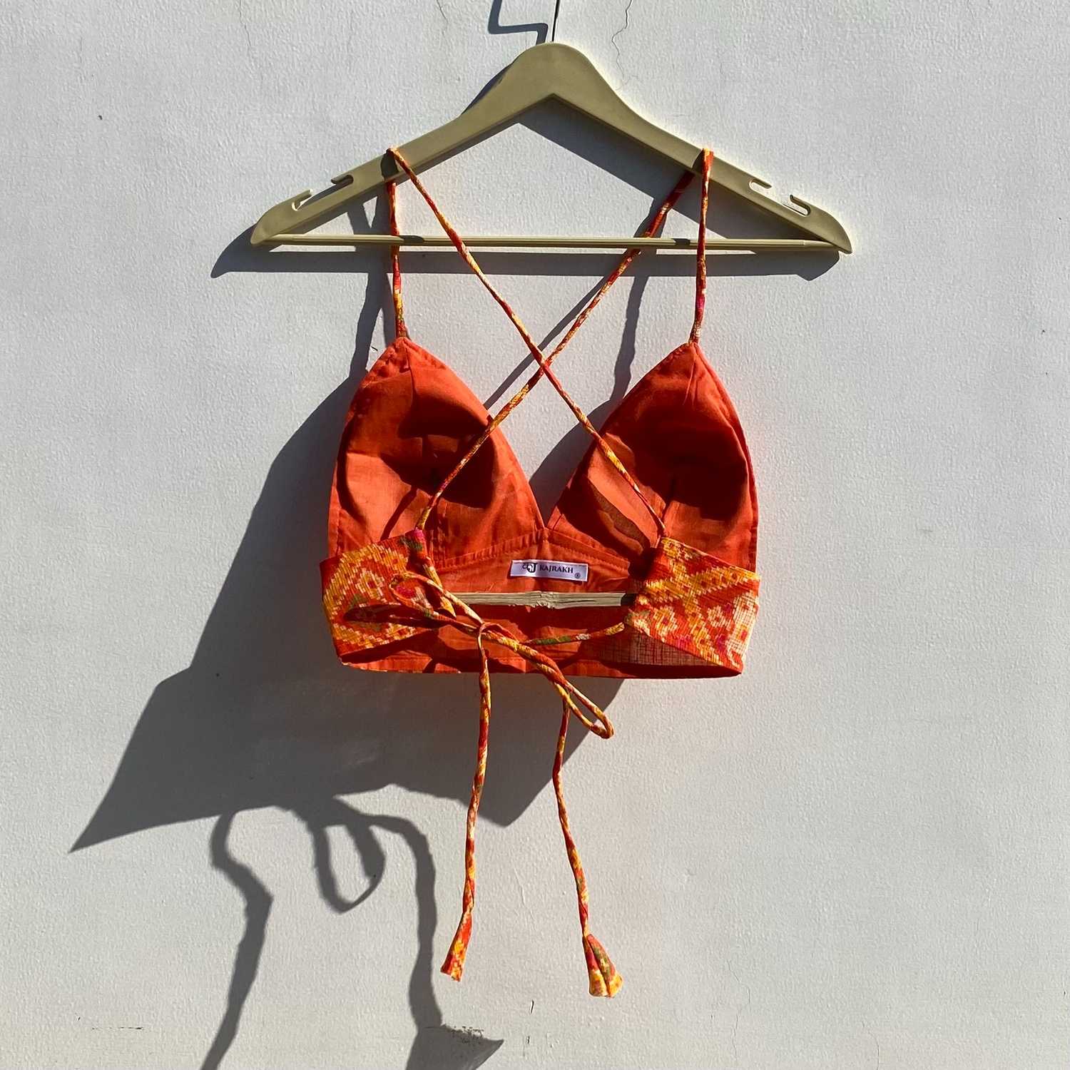 Orange Patola Kota Doria Removable Pad Bra - KJ0831