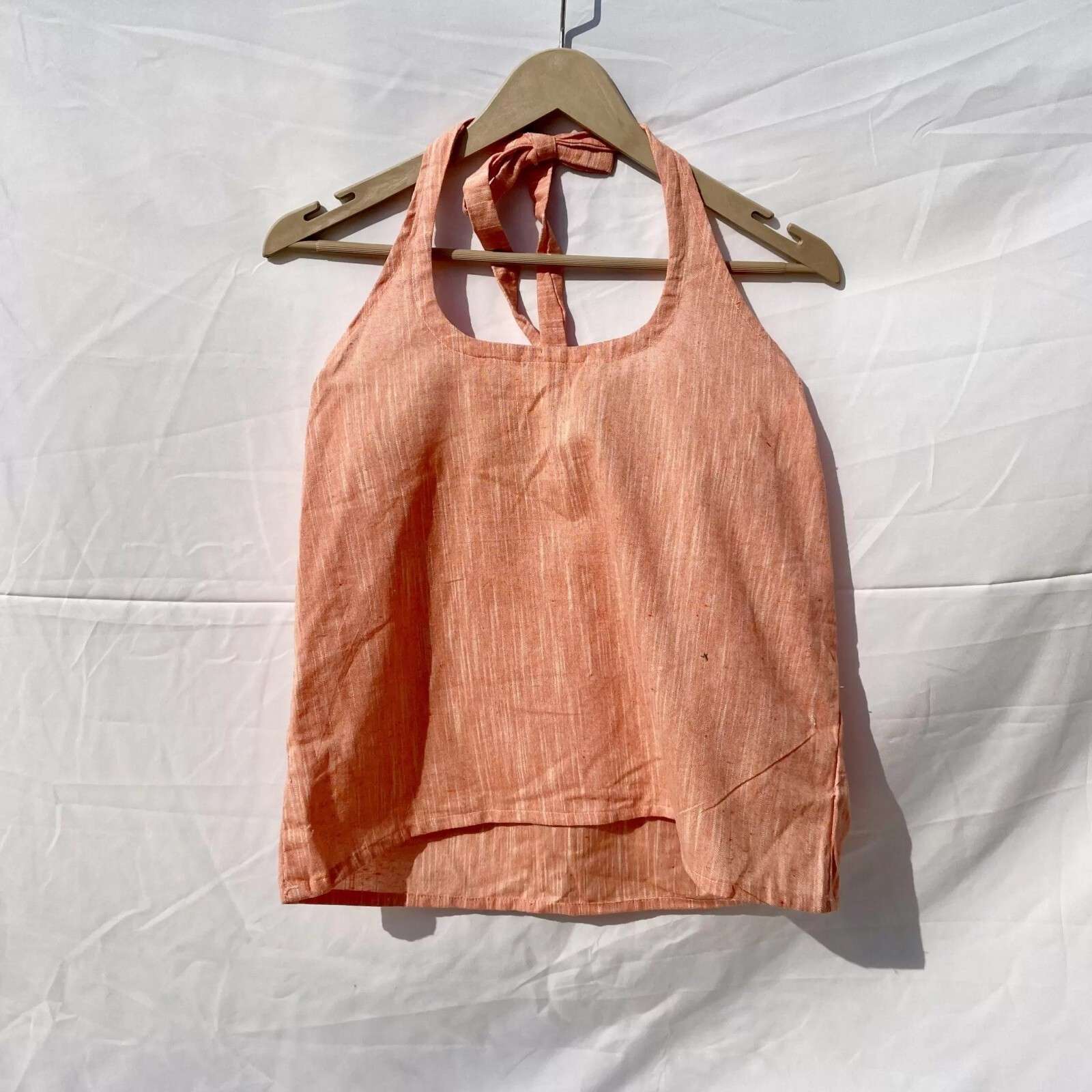 Peach Round Halter Neck Khadi Cotton Top- KJ0057