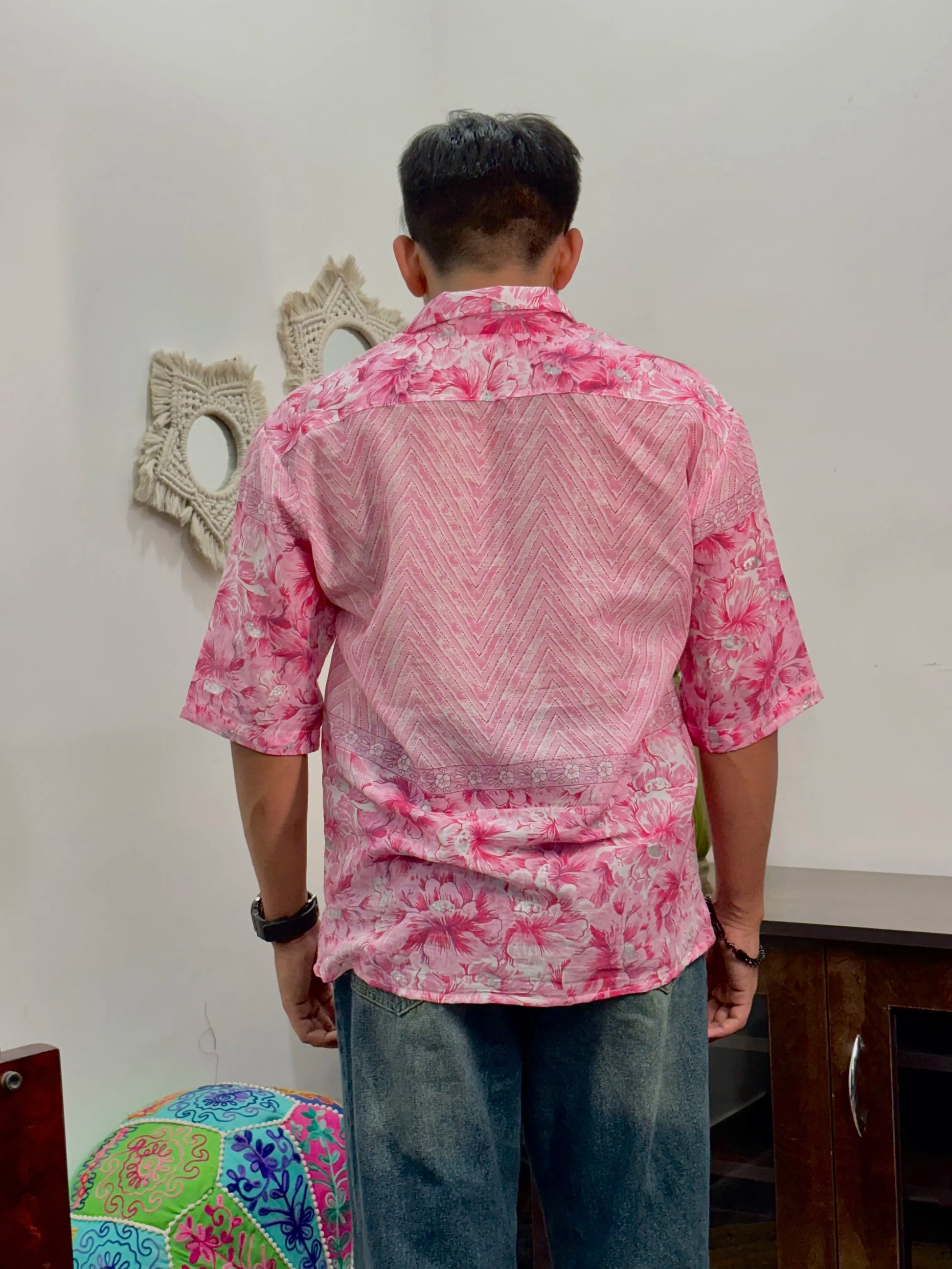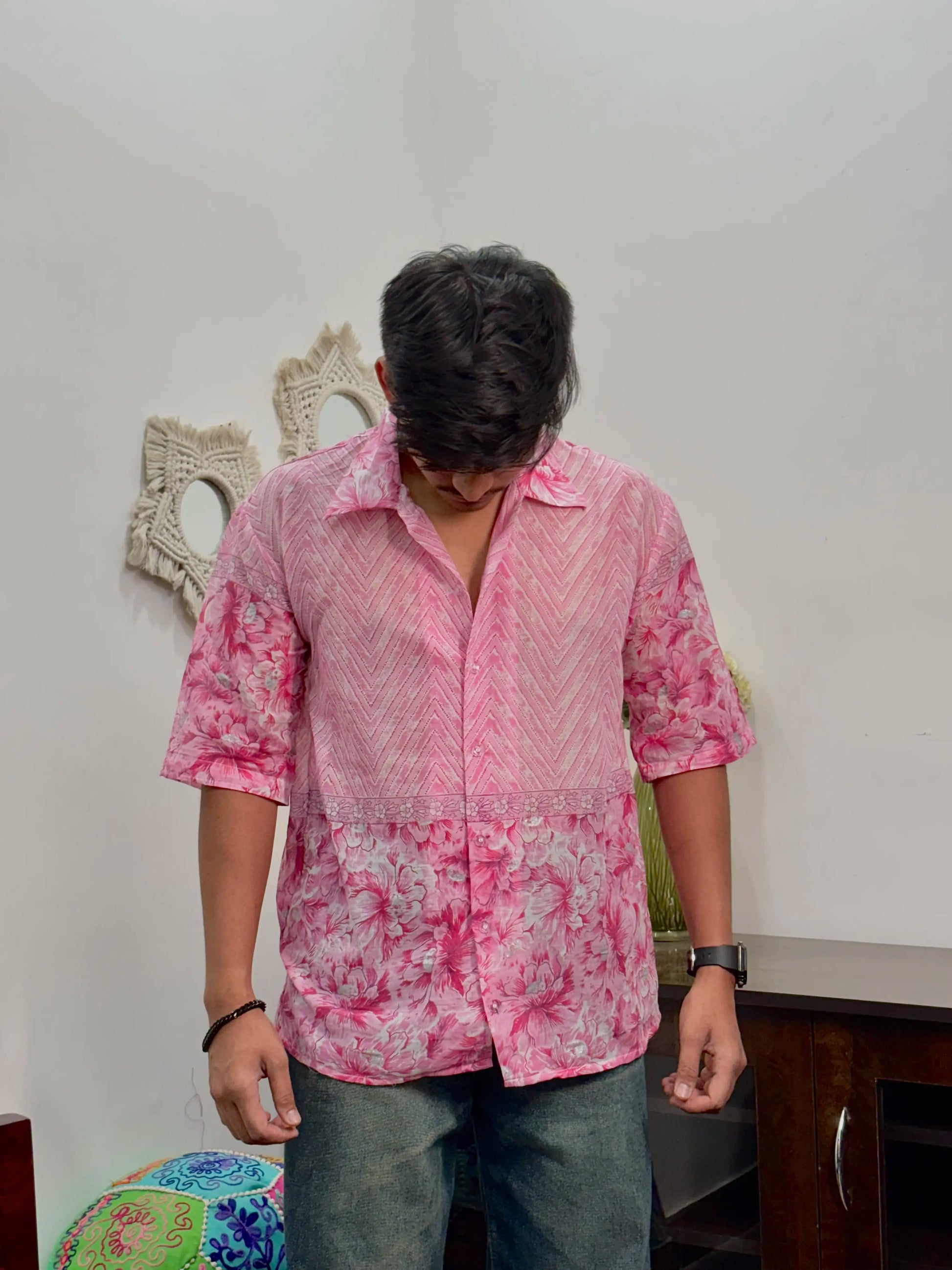 Pink Floral Print Mull Cotton Shirt - AA10129