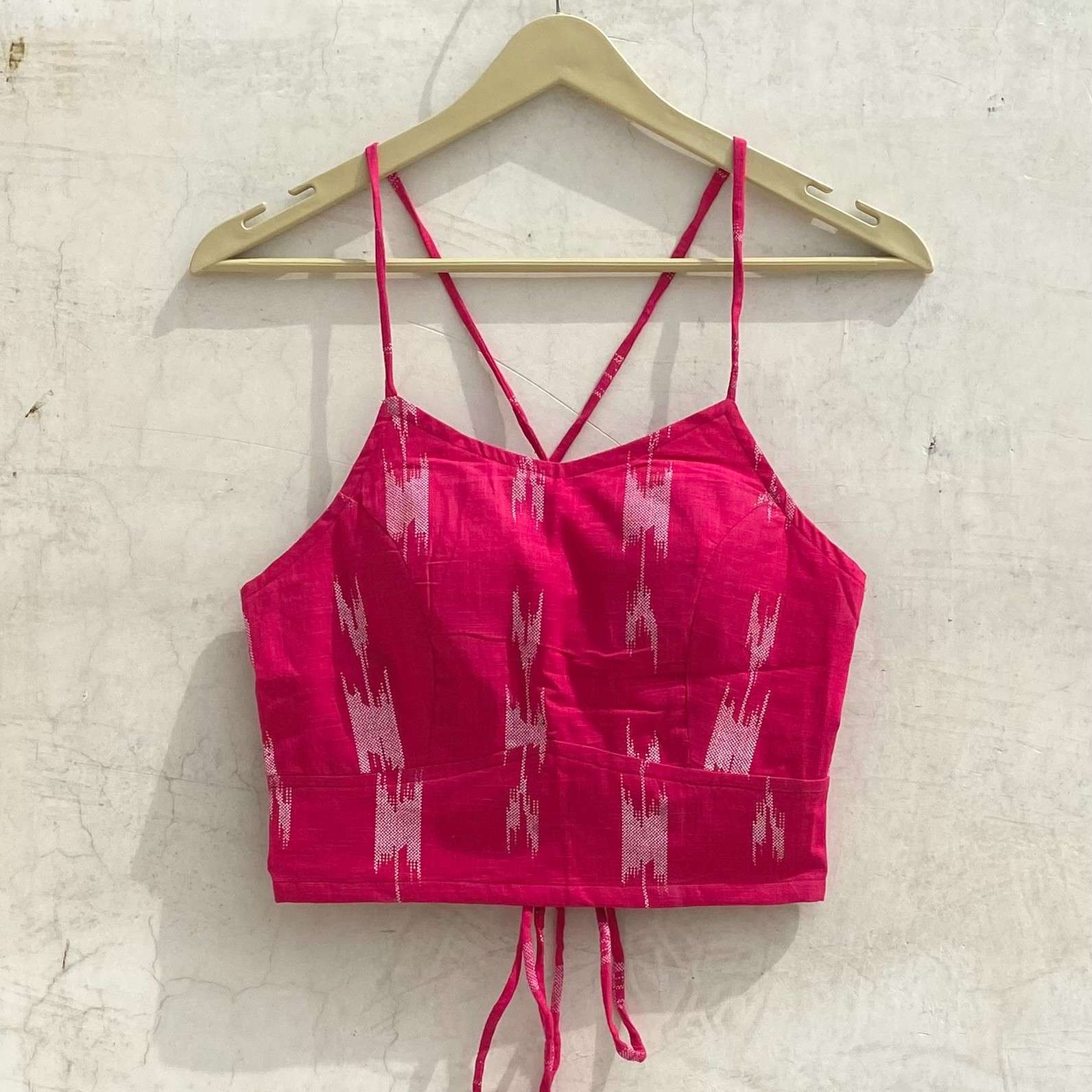 Pink Ikat Criss Cross Removable Pads Top - KJ10181