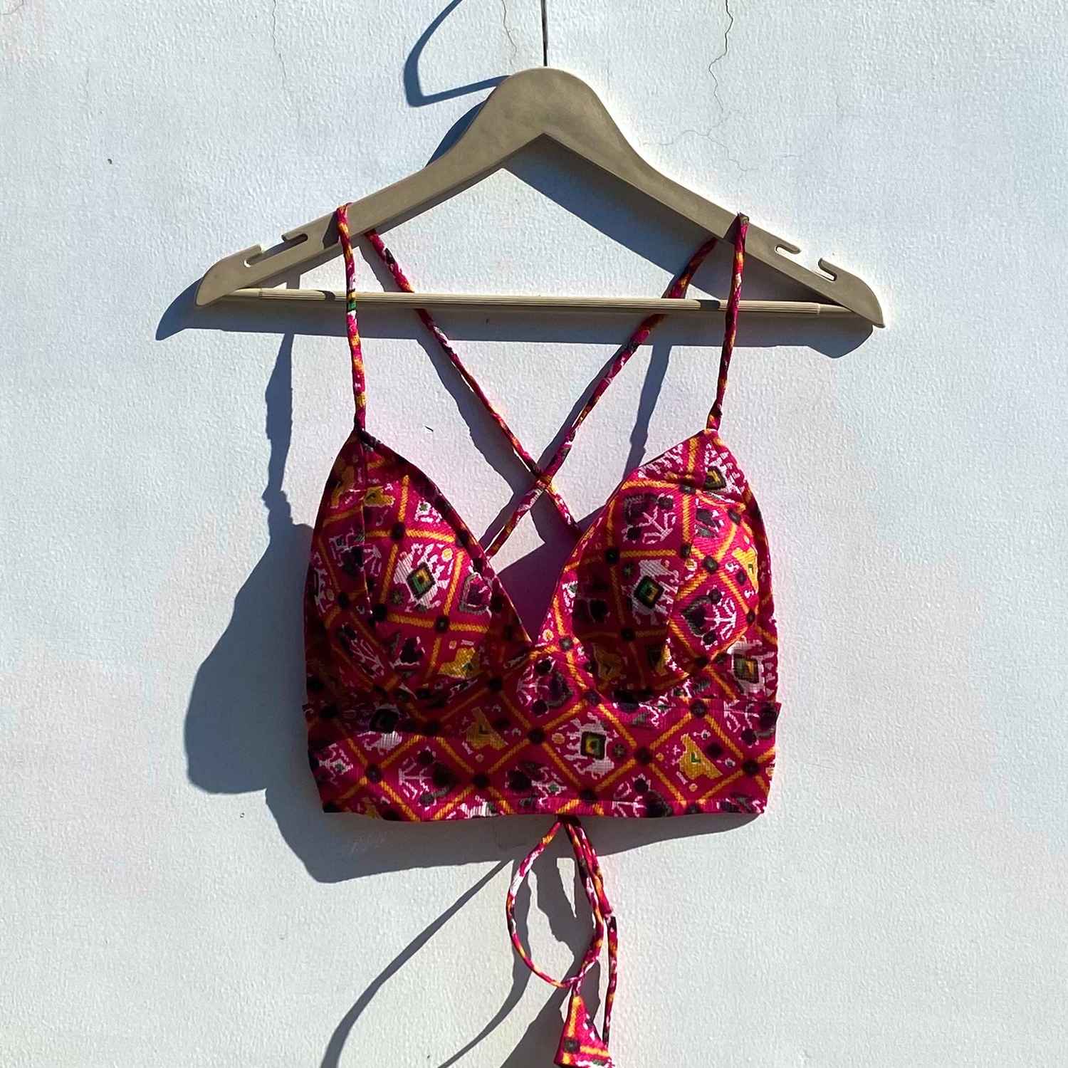 Pink Patola Kota Doria Removable Pad Bra - KJ0832