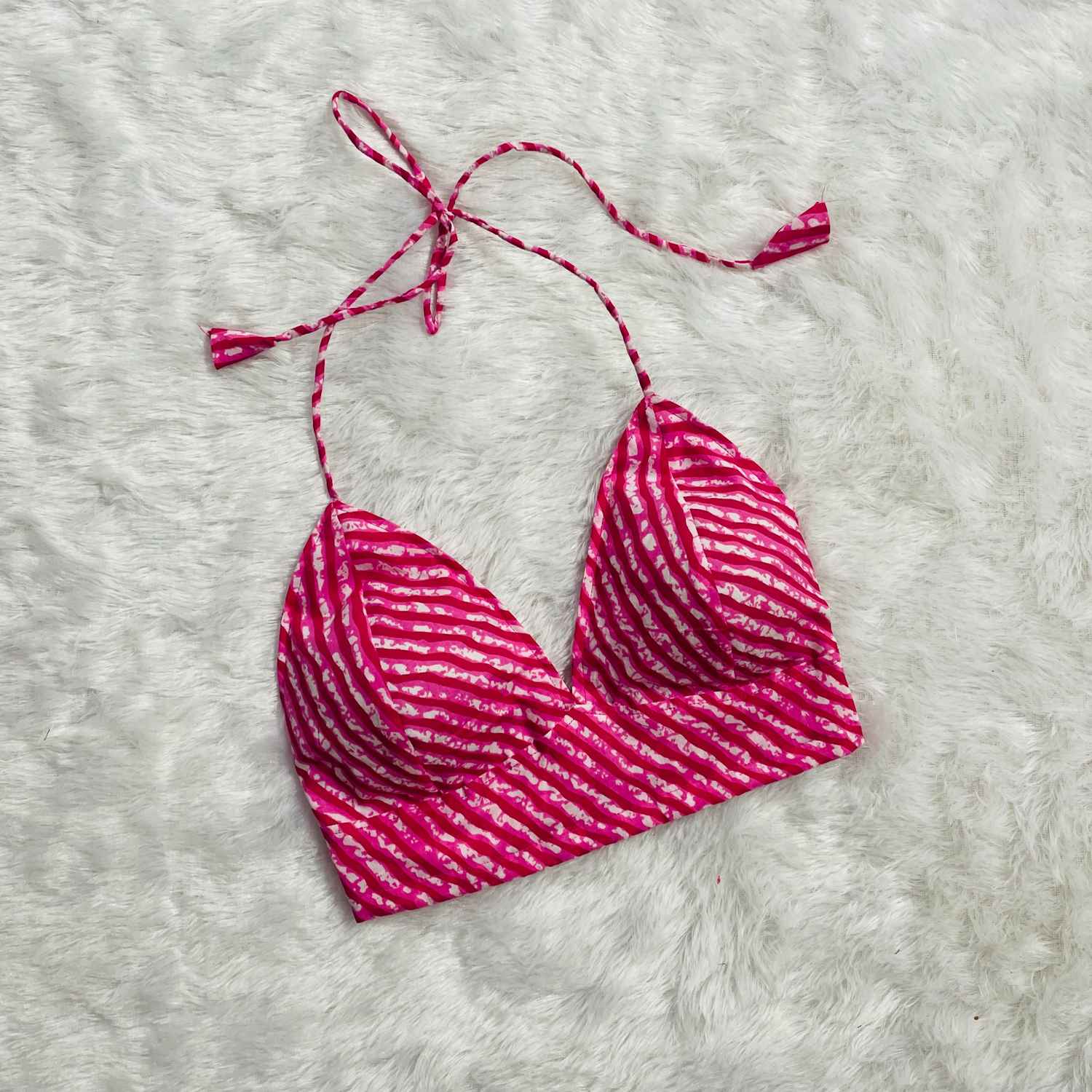 Pink White Lehariya Bra - KJ0282