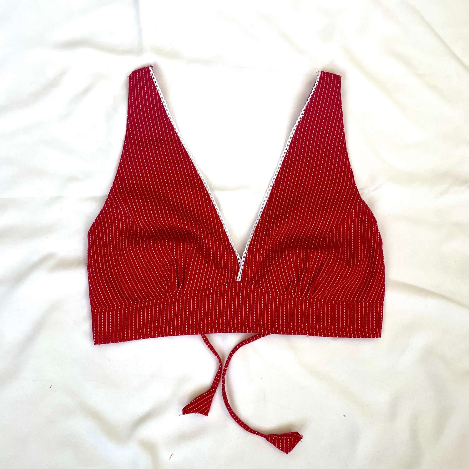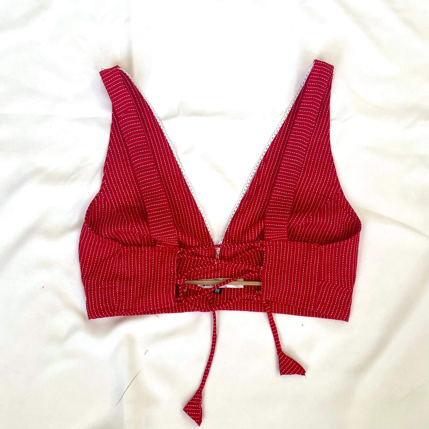 Red Deep V Neck Cotton Kantha Bra - KJ0092