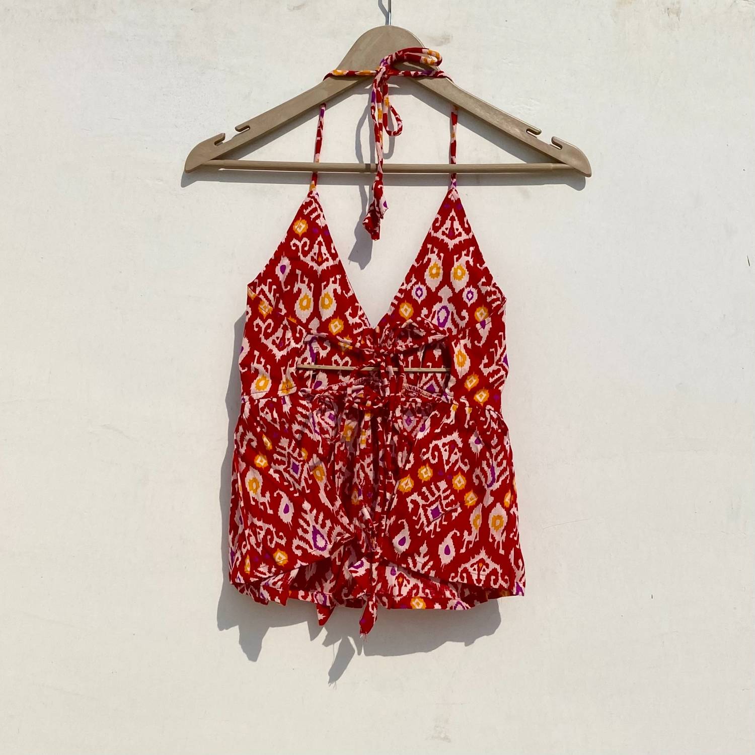 Red Patola Front Knot and Back Knot Removable Pads Top - KJ0942