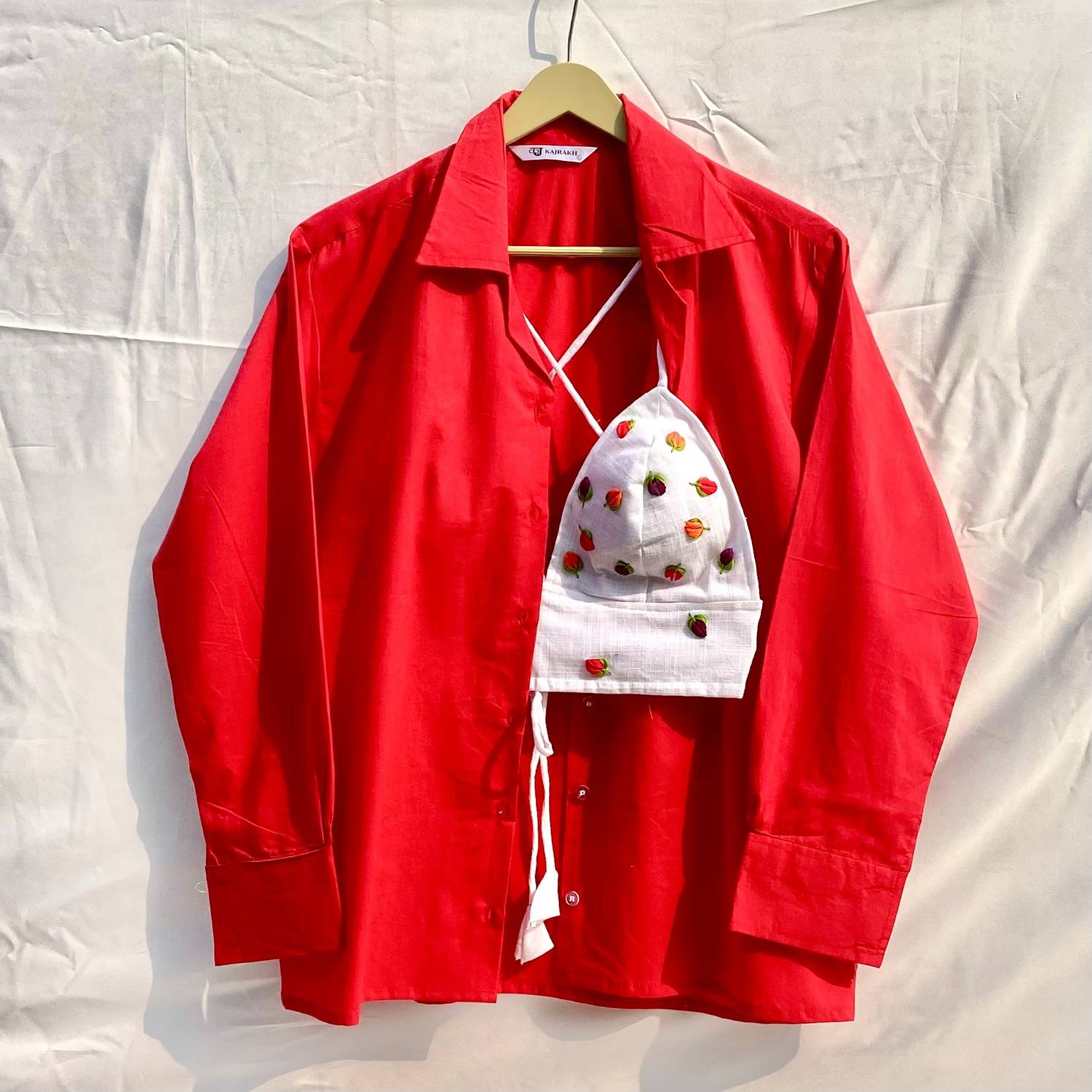 Red Shirt and Leaf Hand Embroidery Bra Combo - KJ10297