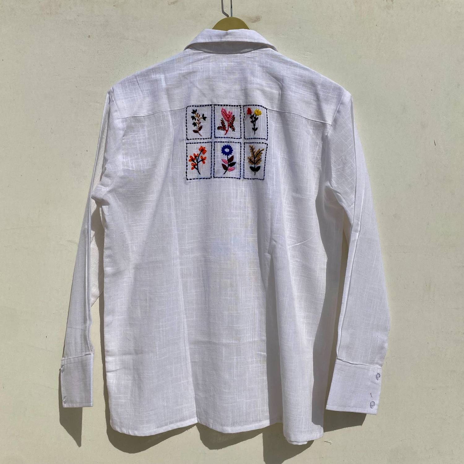 White 6 Box Embroidery Cotton Women Shirt - KJ0998