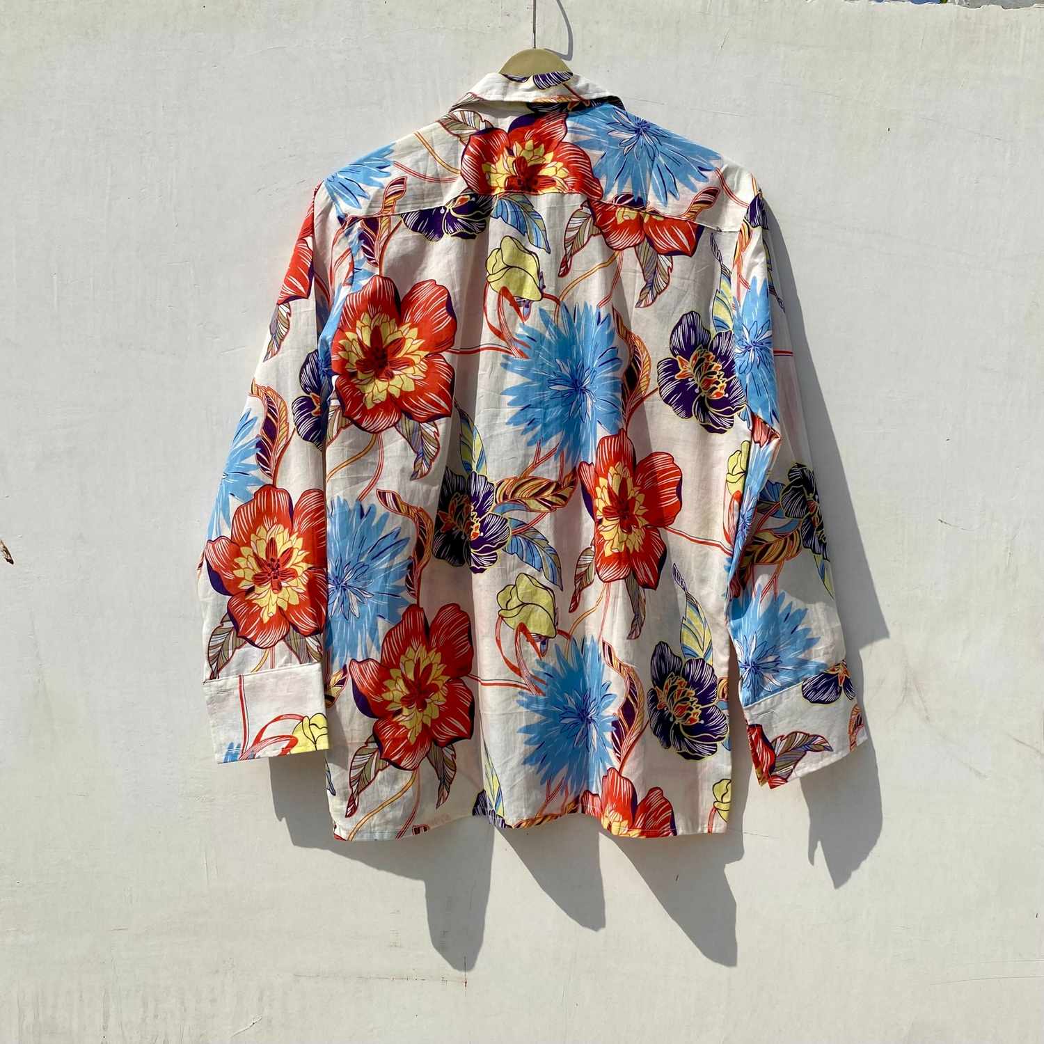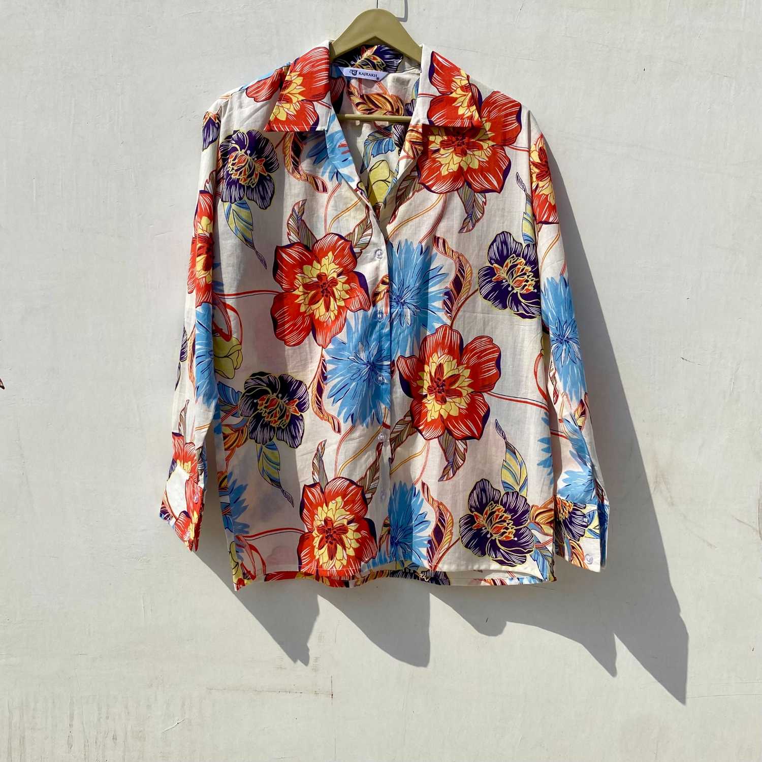 White Orange Blue Big Floral Mul Women Shirt - KJ10098