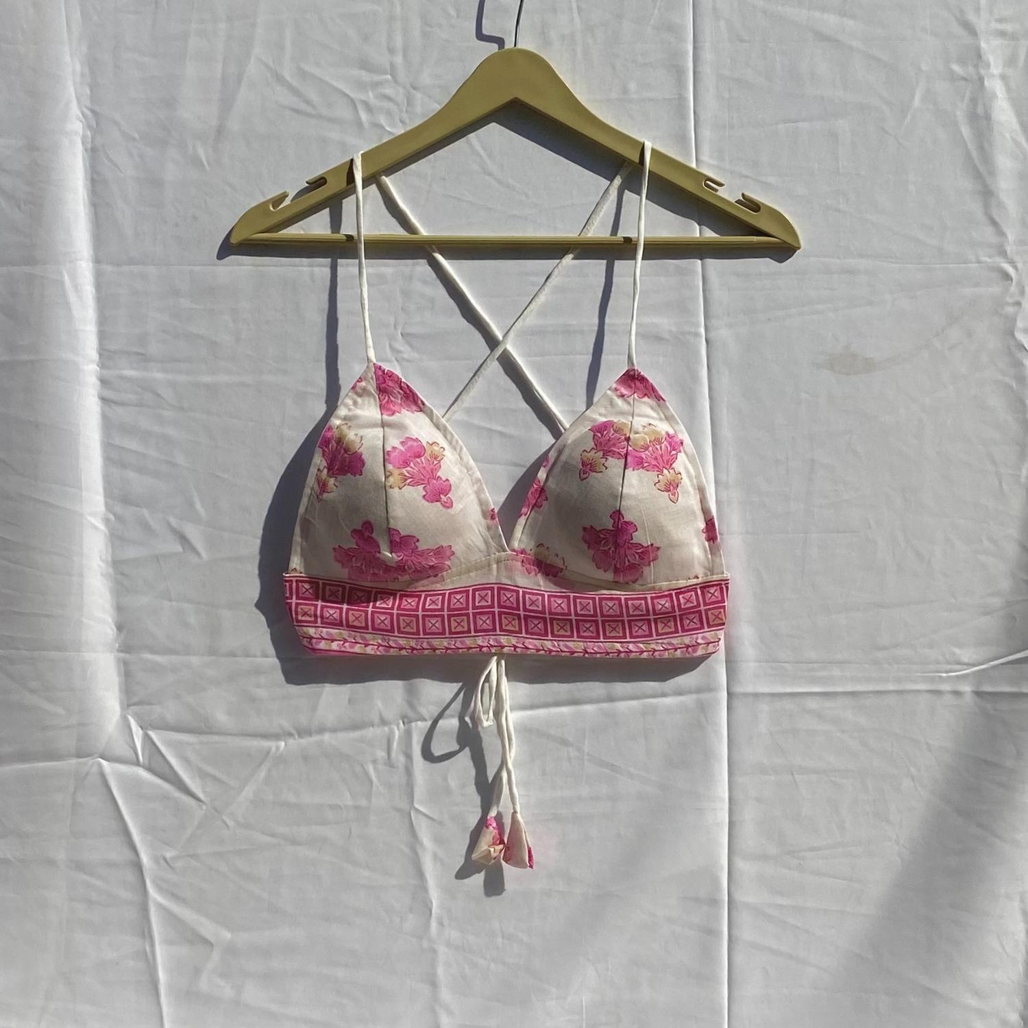 White Pink Traditional Removable Pads Bra - KJ10264
