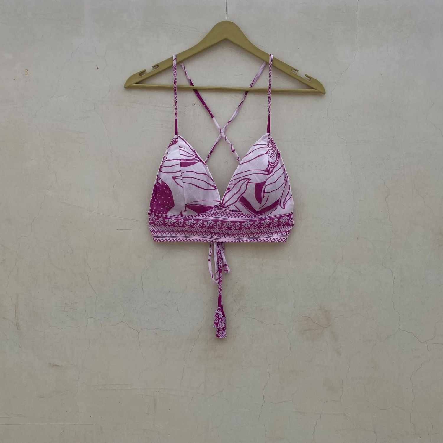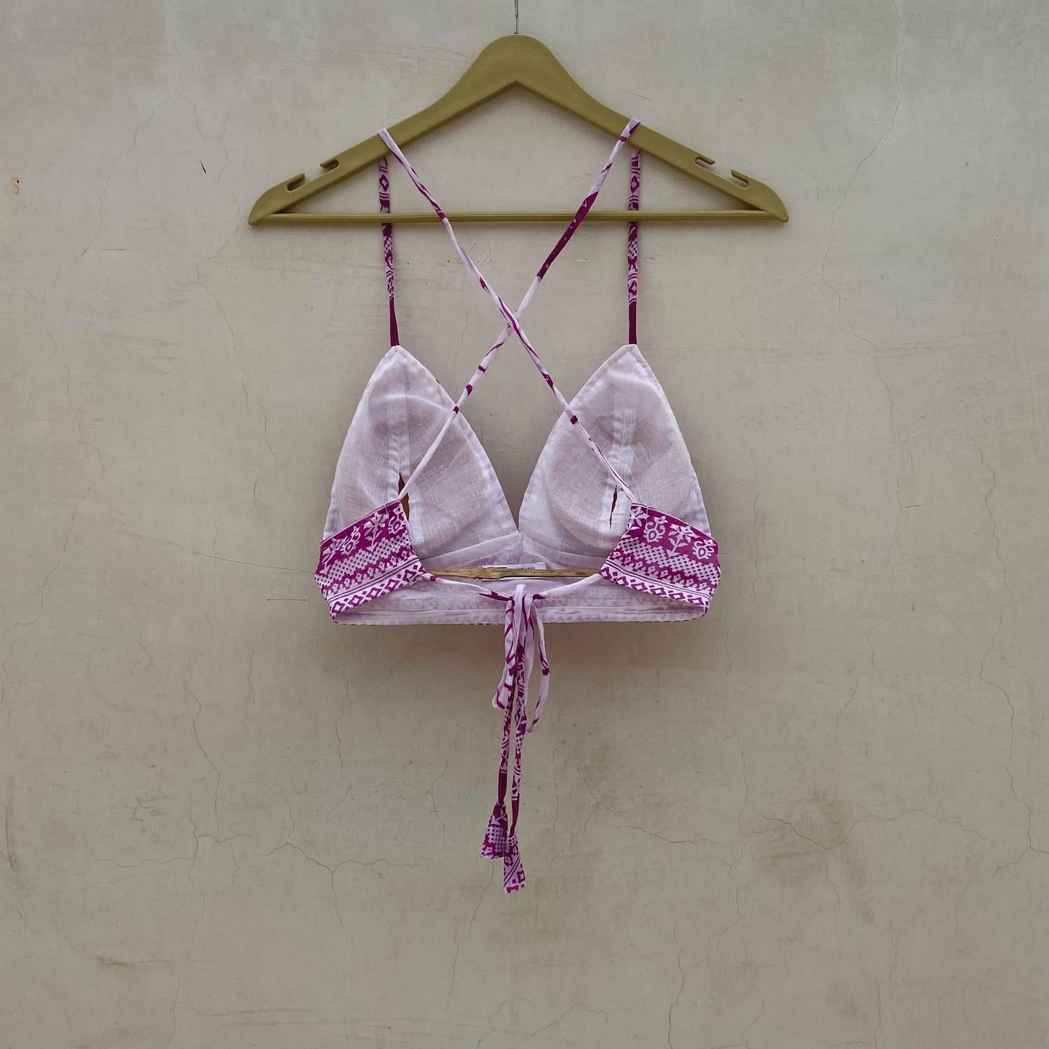 White Purple AbstractRemovable Pads Bra - KJ10092
