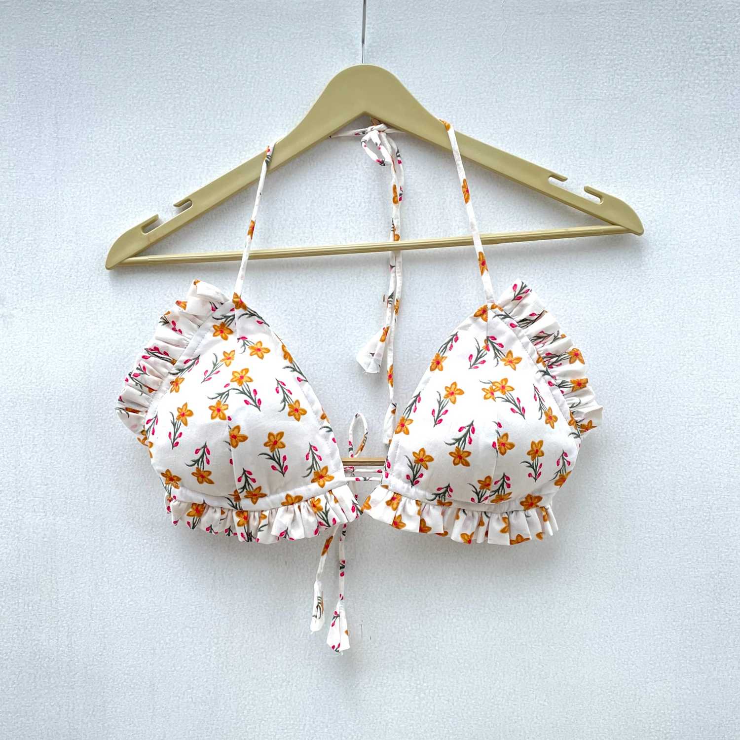 White Yellow Butti Frill Cotton Bra- KJ0314