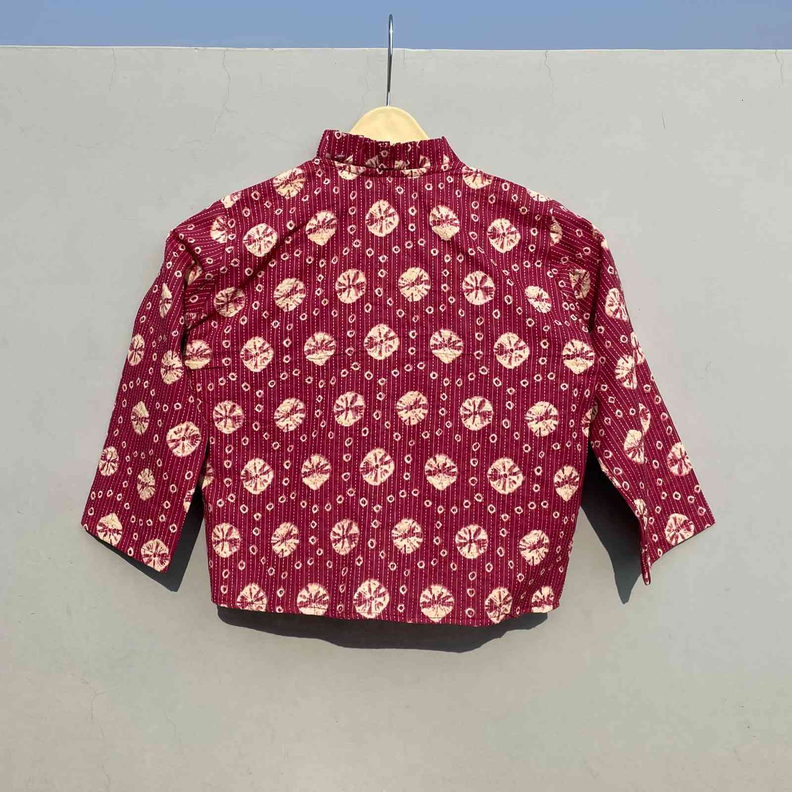 Wine Shibori Katha Frill Neck Cotton Top - KJ0287 ( Clearance Sale Item )