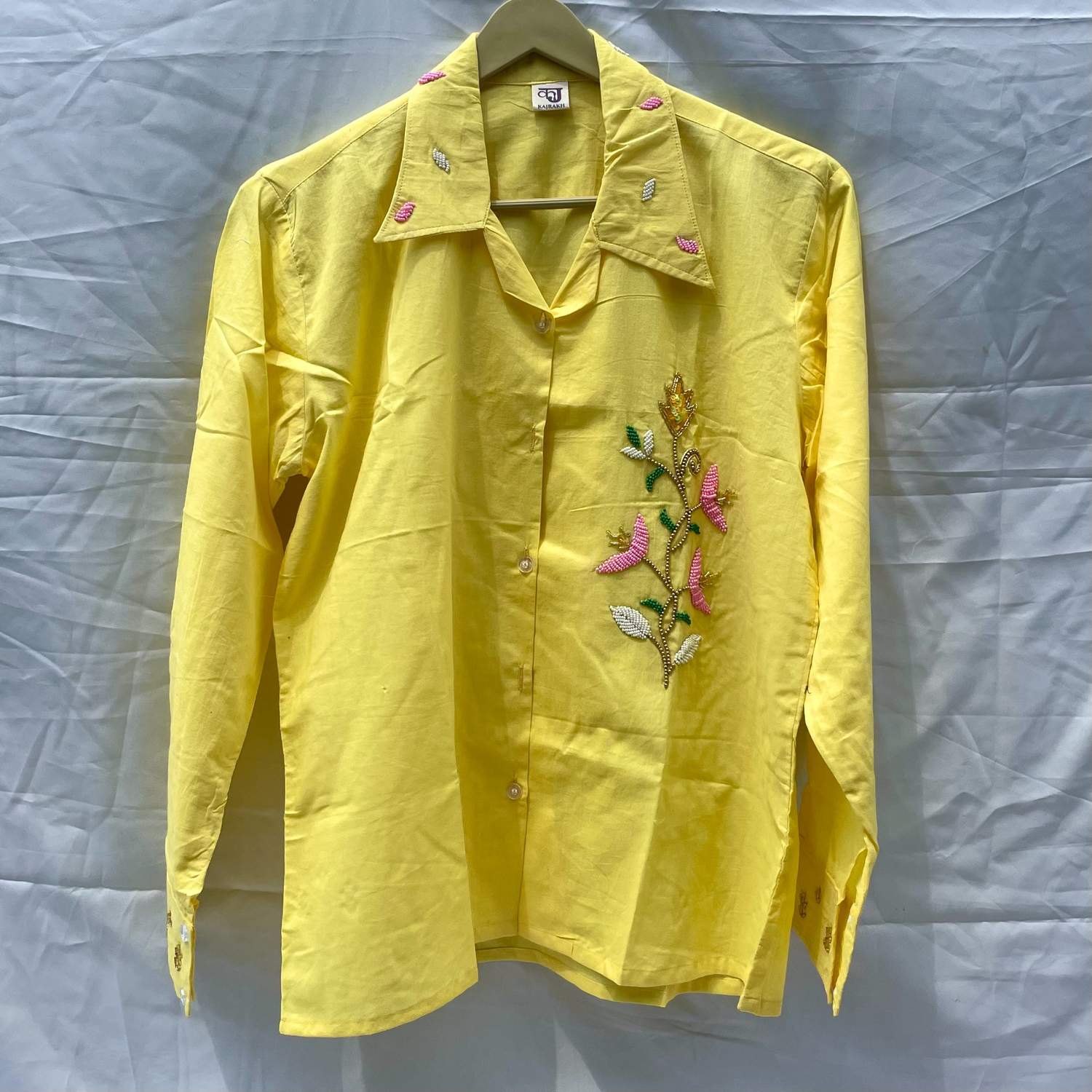 Yellow Pink Hand Embroidery Cotton Shirt - KJ0410